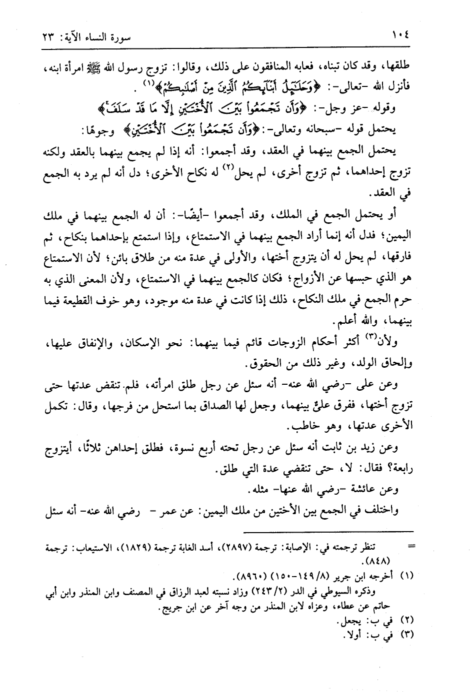 وقوله - عَزَّ وَجَلَّ -: (وَأَنْ تَجْمَعُوا بَيْنَ الْأُخْتَيْنِ إِلَّا مَا قَدْ سَلَفَ)