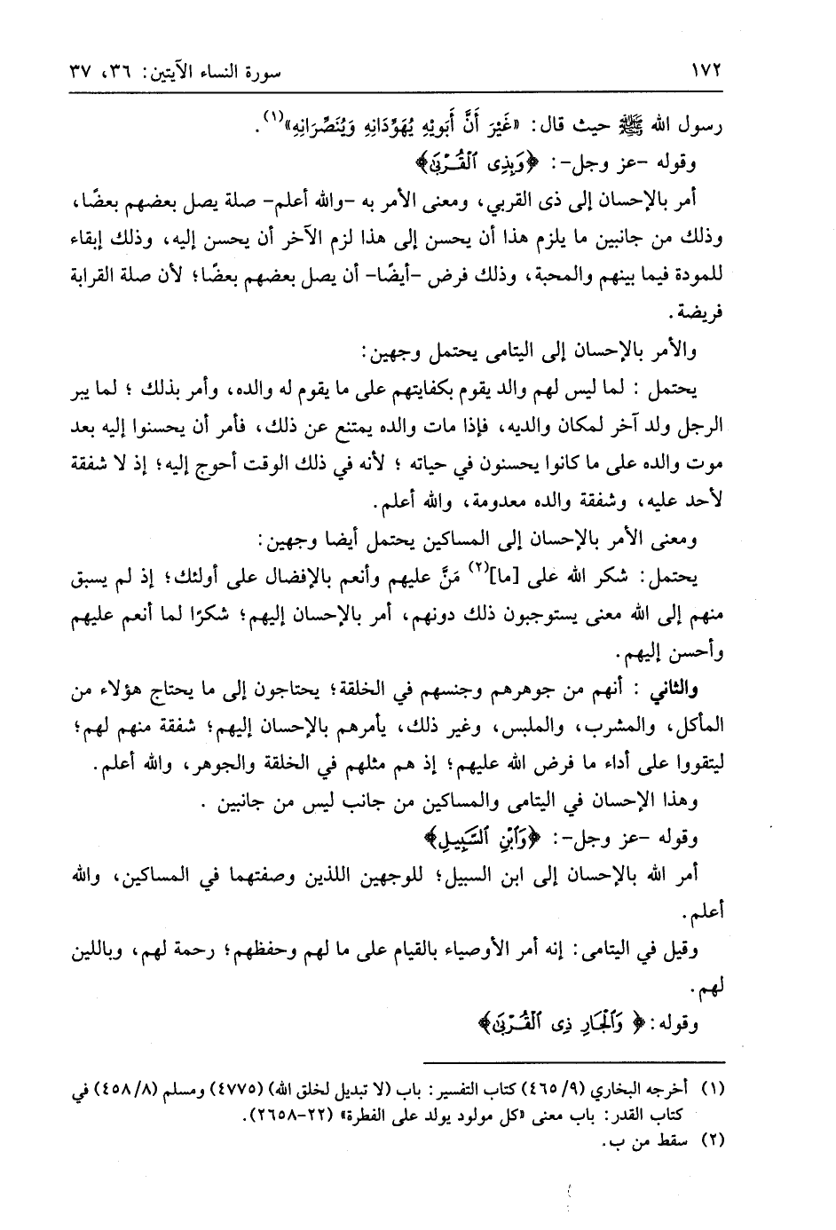 رسول اللَّه - صَلَّى اللَّهُ عَلَيهِ وَسَلَّمَ - حيث قال: " غَيرَ أنَّ أَبَويْهِ يُهَوِّدَانِهِ وُينَصِّرَانِهِ ".
