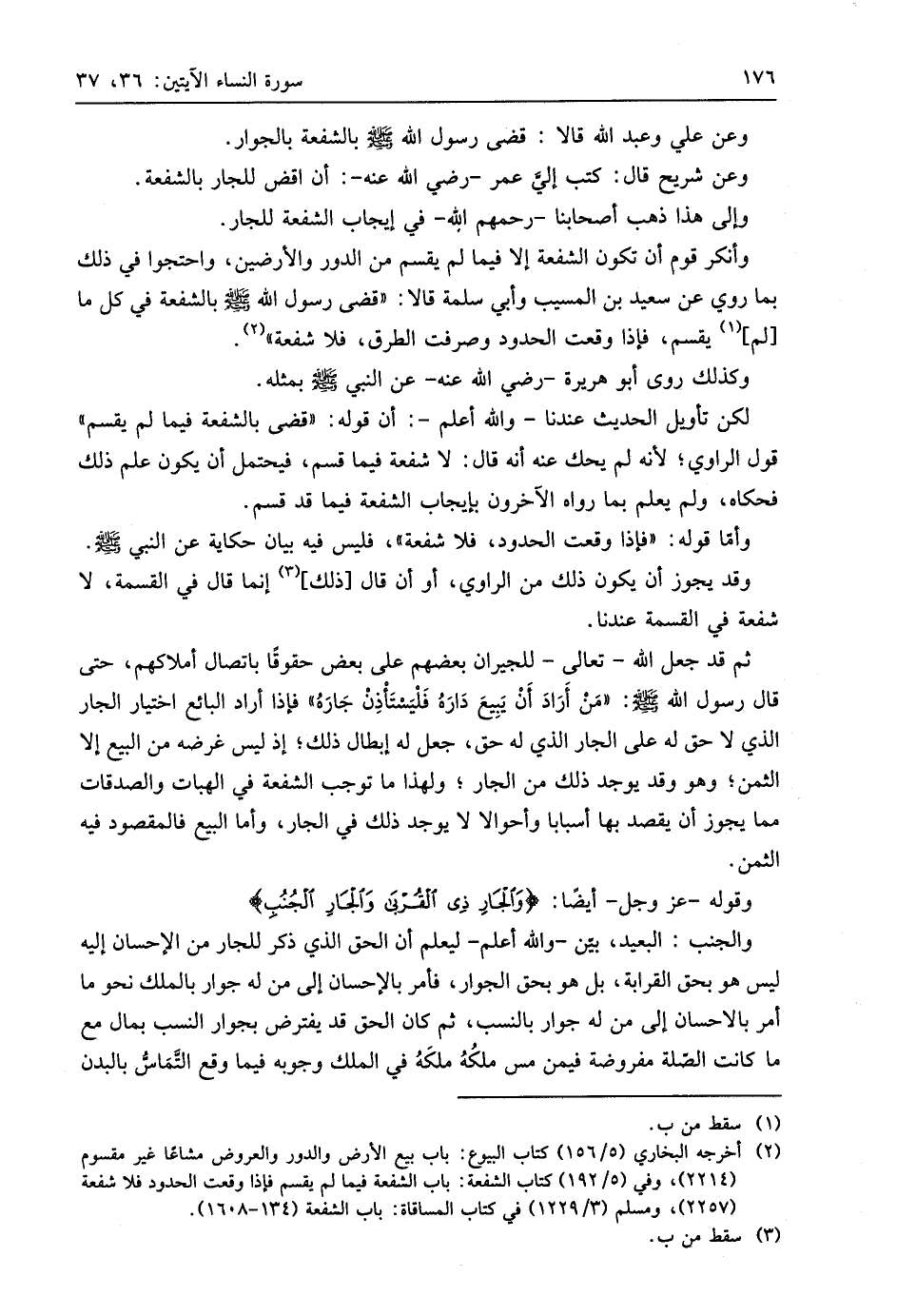 وقوله - عَزَّ وَجَلَّ - أيضًا: (وَالْجَارِ ذِي الْقُرْبَى وَالْجَارِ الْجُنُبِ)