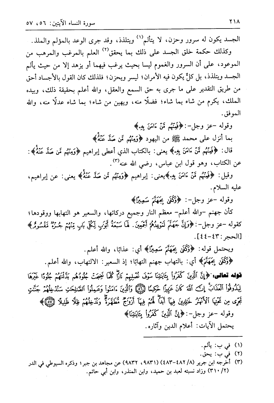 قال: (فَمِنْهُمْ مَنْ آمَنَ بِهِ) يعني: بالكتاب الذي أعطى إبراهيم (وَمِنْهُمْ مَنْ صَدَّ عَنْهُ): عن الكتاب، وهو قول ابن عَبَّاسٍ، رَضِيَ اللَّهُ عَنْهُ.