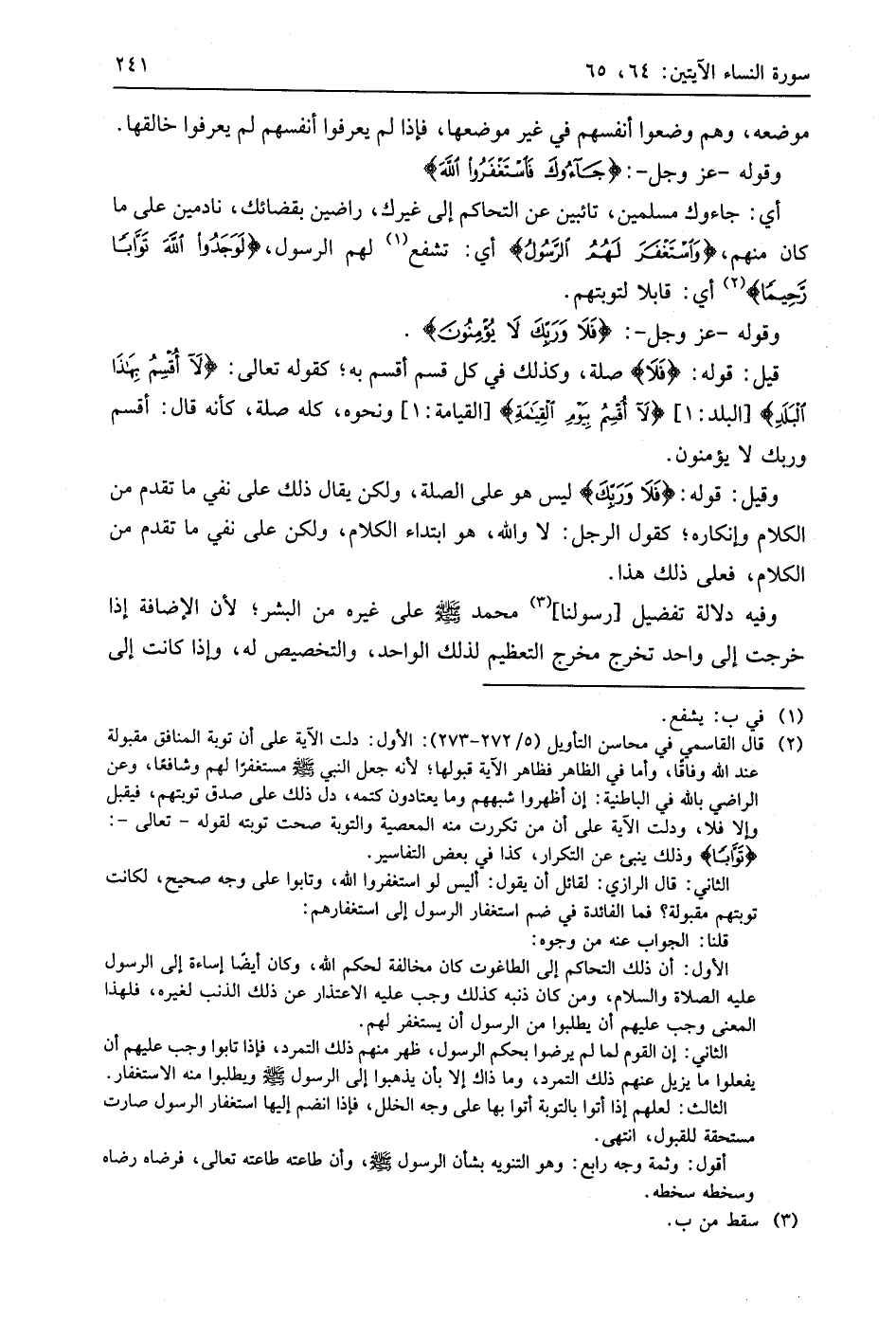 وقوله - عَزَّ وَجَلَّ -: (فَلَا وَرَبِّكَ لَا يُؤْمِنُونَ ... (65)