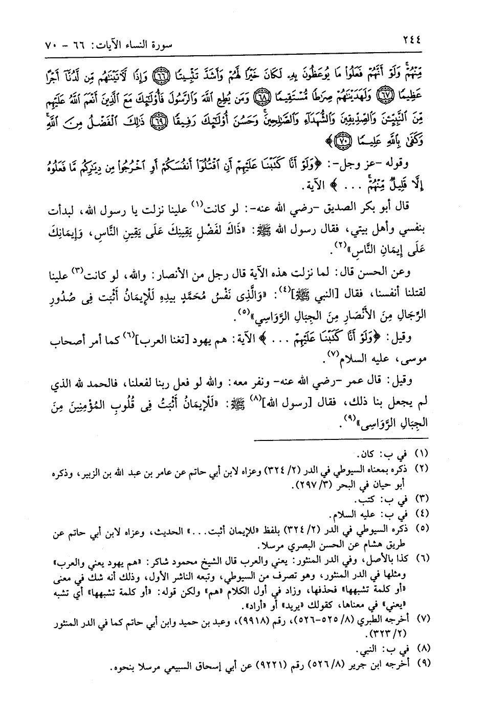 مِنْهُمْ وَلَوْ أَنَّهُمْ فَعَلُوا مَا يُوعَظُونَ بِهِ لَكَانَ خَيْرًا لَهُمْ وَأَشَدَّ تَثْبِيتًا (66) وَإِذًا لَآتَيْنَاهُمْ مِنْ لَدُنَّا أَجْرًا عَظِيمًا (67) وَلَهَدَيْنَاهُمْ صِرَاطًا مُسْتَقِيمًا (68) وَمَنْ يُطِعِ اللَّهَ وَالرَّسُولَ فَأُولَئِكَ مَعَ الَّذِينَ أَنْعَمَ اللَّهُ عَلَيْهِمْ مِنَ النَّبِيِّينَ وَالصِّدِّيقِينَ وَالشُّهَدَاءِ وَالصَّالِحِينَ وَحَسُنَ أُولَئِكَ رَفِيقًا (69) ذَلِكَ الْفَضْلُ مِنَ اللَّهِ وَكَفَى بِاللَّهِ عَلِيمًا (70)