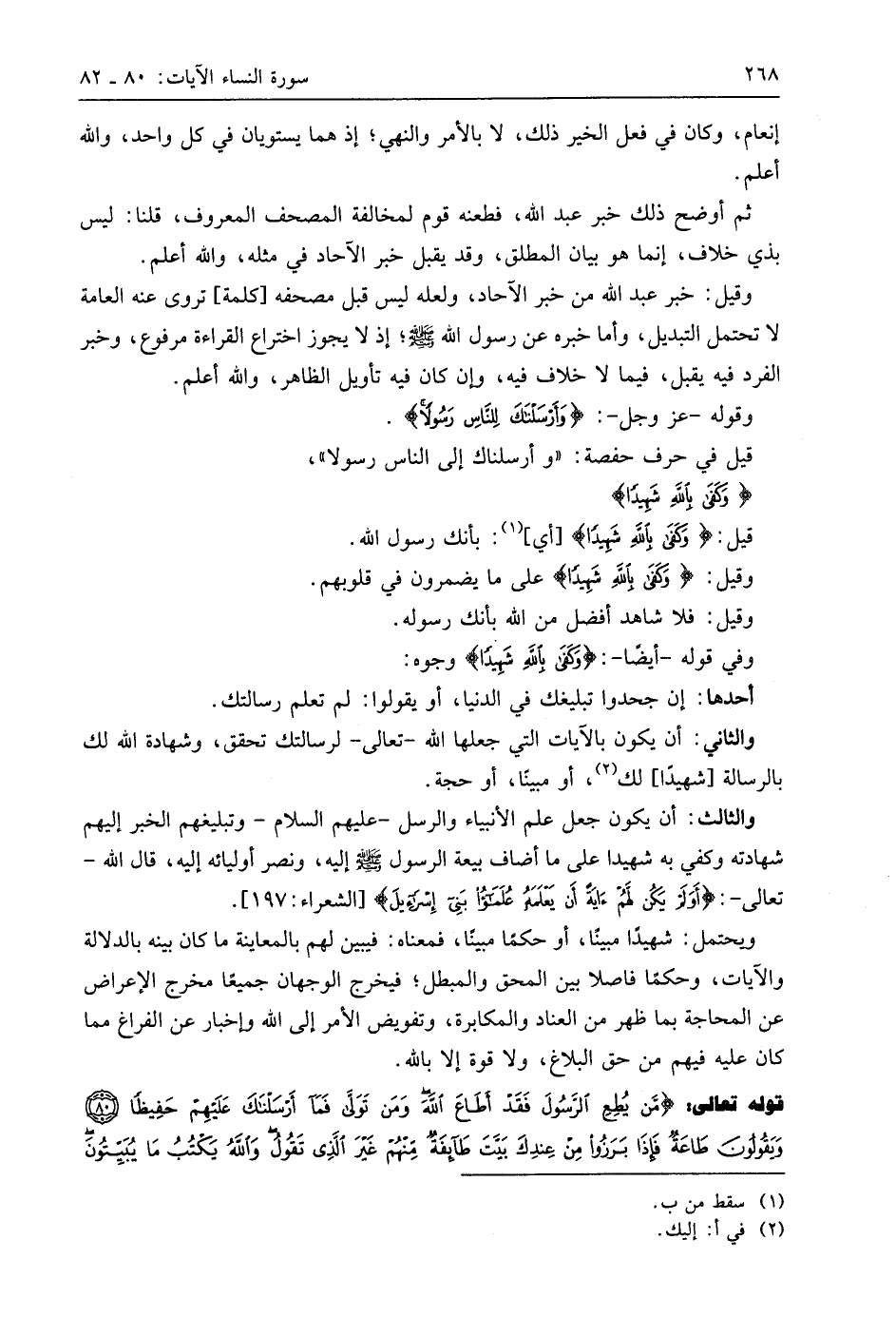 وفي قوله -أيضًا-: (وَكَفَى بِاللَّهِ شَهِيدًا) وجوه: