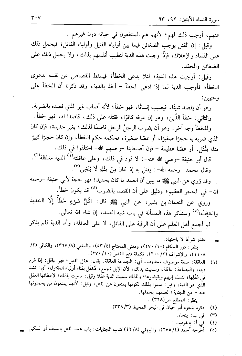وقيل: أوجبت هذه الدية؛ لئلا يدعي الخطأ؛ فيسقط القصاص عن نفسه بدعوى الخطأ؛ فأوجب الدية لما إذا ادعى الخطأ - أخذ بالدية، وقد ذكرنا أن الخطأ على وجهين: