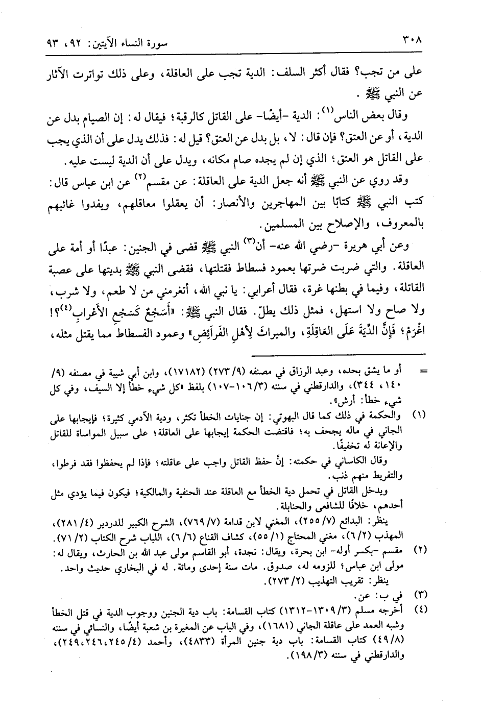 وقال بعض الناس: الدية -أيضًا- على القاتل كالرقبة؛ فيقال له: إن الصيام بدل عن الدية، أو عن العتق؛ فإن قال: لا، بل بدل عن العتق؛ قيل له: فذلك يدل على أن الذي يجب على القاتل هو العتق؛ الذي إن لم يجده صام مكانه، ويدل على أن الدية ليست عليه.