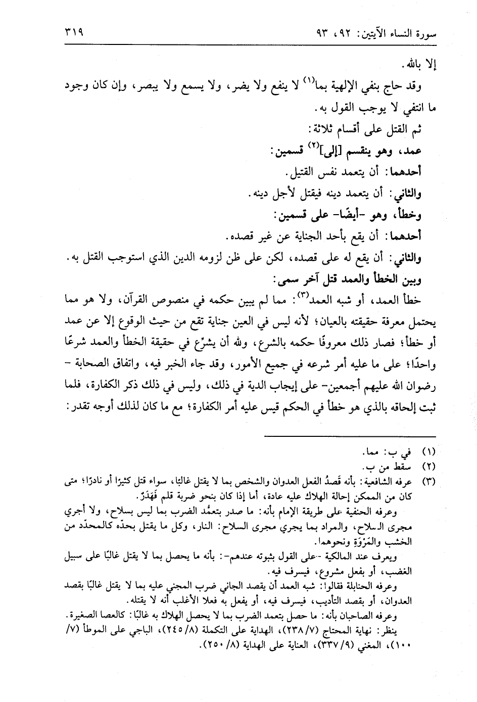 ثم القتل على أقسام ثلاثة: