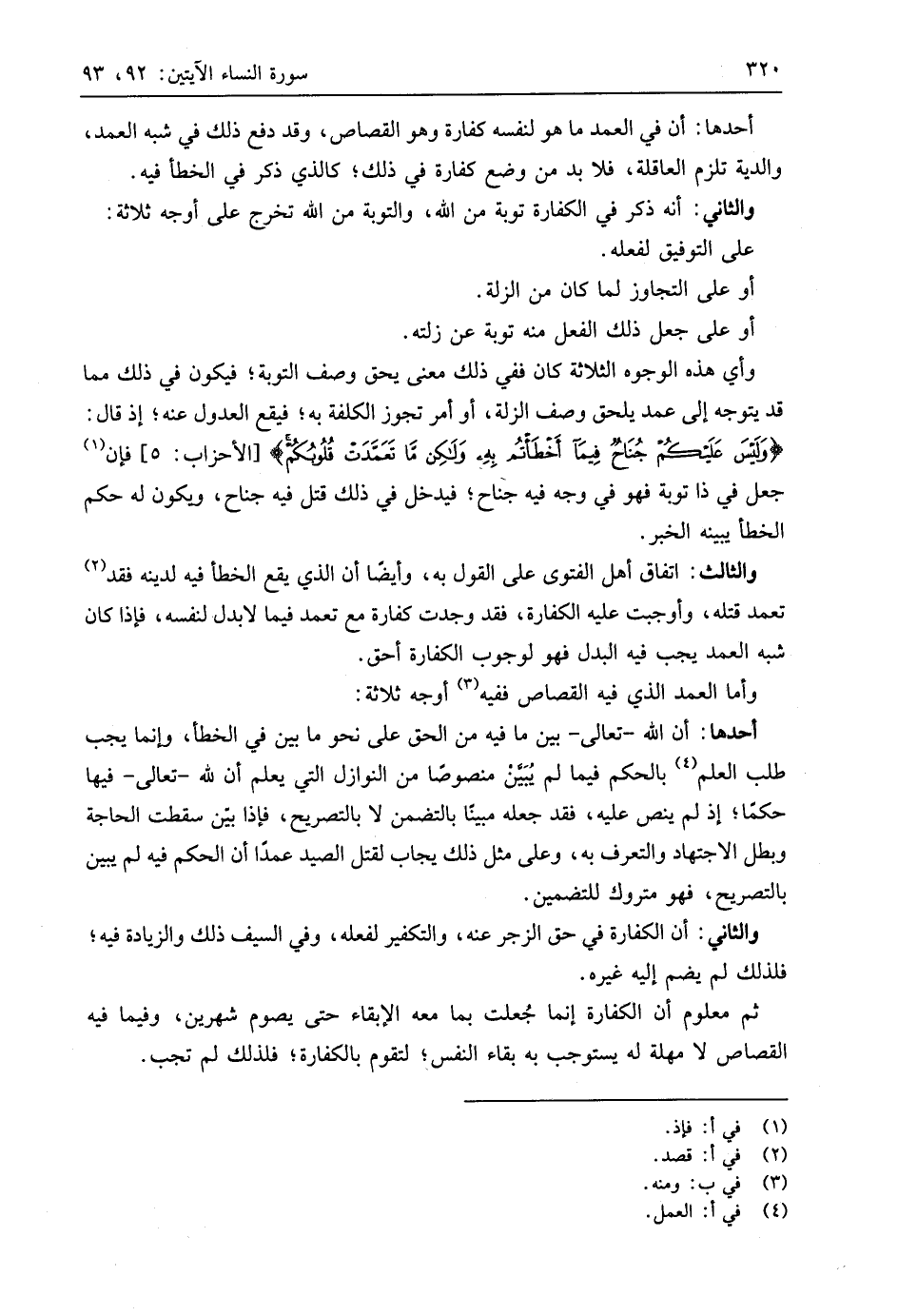 وأي هذه الوجوه الثلاثة كان ففي ذلك معنى يحق وصف التوبة؛ فيكون في ذلك مما قد يتوجه إلى عمد يلحق وصف الزلة، أو أمر تجوز الكلفة به؛ فيقع العدول عنه؛ إذ قال: (وَلَيْسَ عَلَيْكُمْ جُنَاحٌ فِيمَا أَخْطَأْتُمْ بِهِ وَلَكِنْ مَا تَعَمَّدَتْ قُلُوبُكُمْ)، فإن جعل في ذا توبة فهو في وجه فيه جناح؛ فيدخل في ذلك قتل فيه جناح، ويكون له حكم الخطأ يبينه الخبر.
