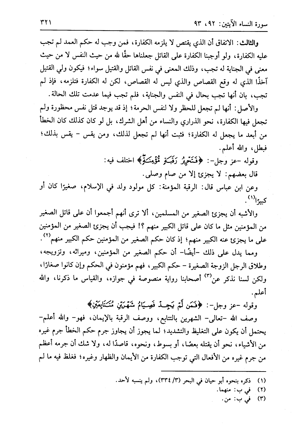 وعن ابن عَبَّاسٍ قال: الرقبة المؤمنة: كل مولود ولد في الإسلام، صغيرًا كان أو كبيرًا.