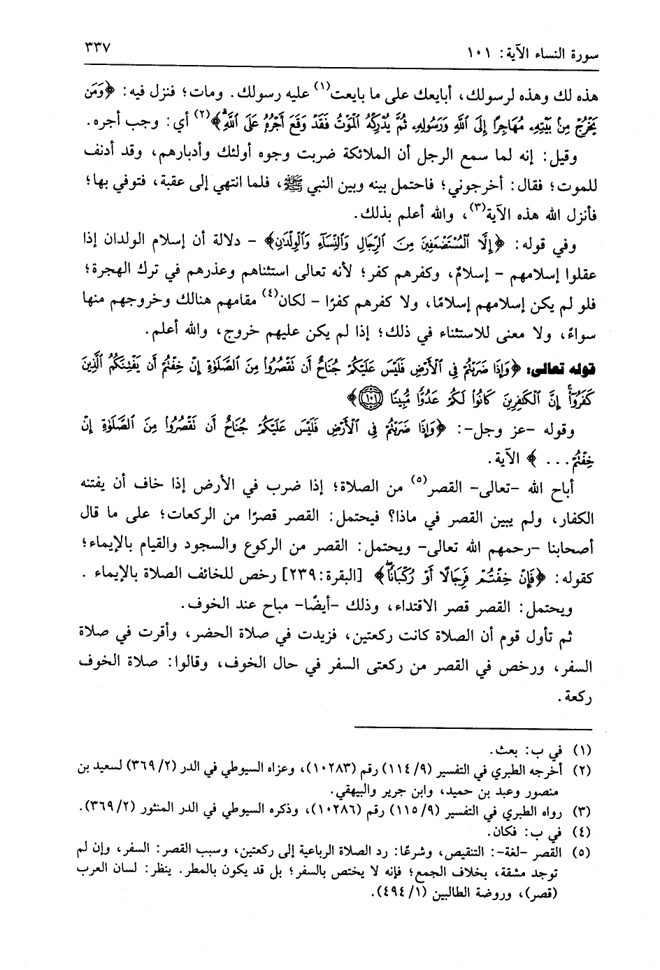 قوله تعالى: (وَإِذَا ضَرَبْتُمْ فِي الْأَرْضِ فَلَيْسَ عَلَيْكُمْ جُنَاحٌ أَنْ تَقْصُرُوا مِنَ الصَّلَاةِ إِنْ خِفْتُمْ أَنْ يَفْتِنَكُمُ الَّذِينَ كَفَرُوا إِنَّ الْكَافِرِينَ كَانُوا لَكُمْ عَدُوًّا مُبِينًا (101)