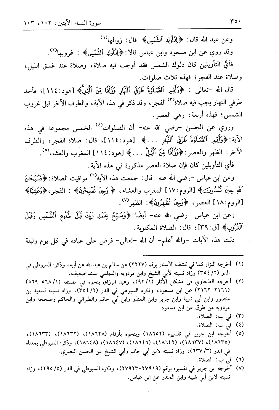 وعن ابن عَبَّاسٍ - رضي اللَّه عنه - أيضًا: (وَسَبِّحْ بِحَمْدِ رَبِّكَ قَبْلَ طُلُوعِ الشَّمْسِ وَقَبْلَ الْغُرُوبِ)؛ قال: الصلاة المكتوبة.