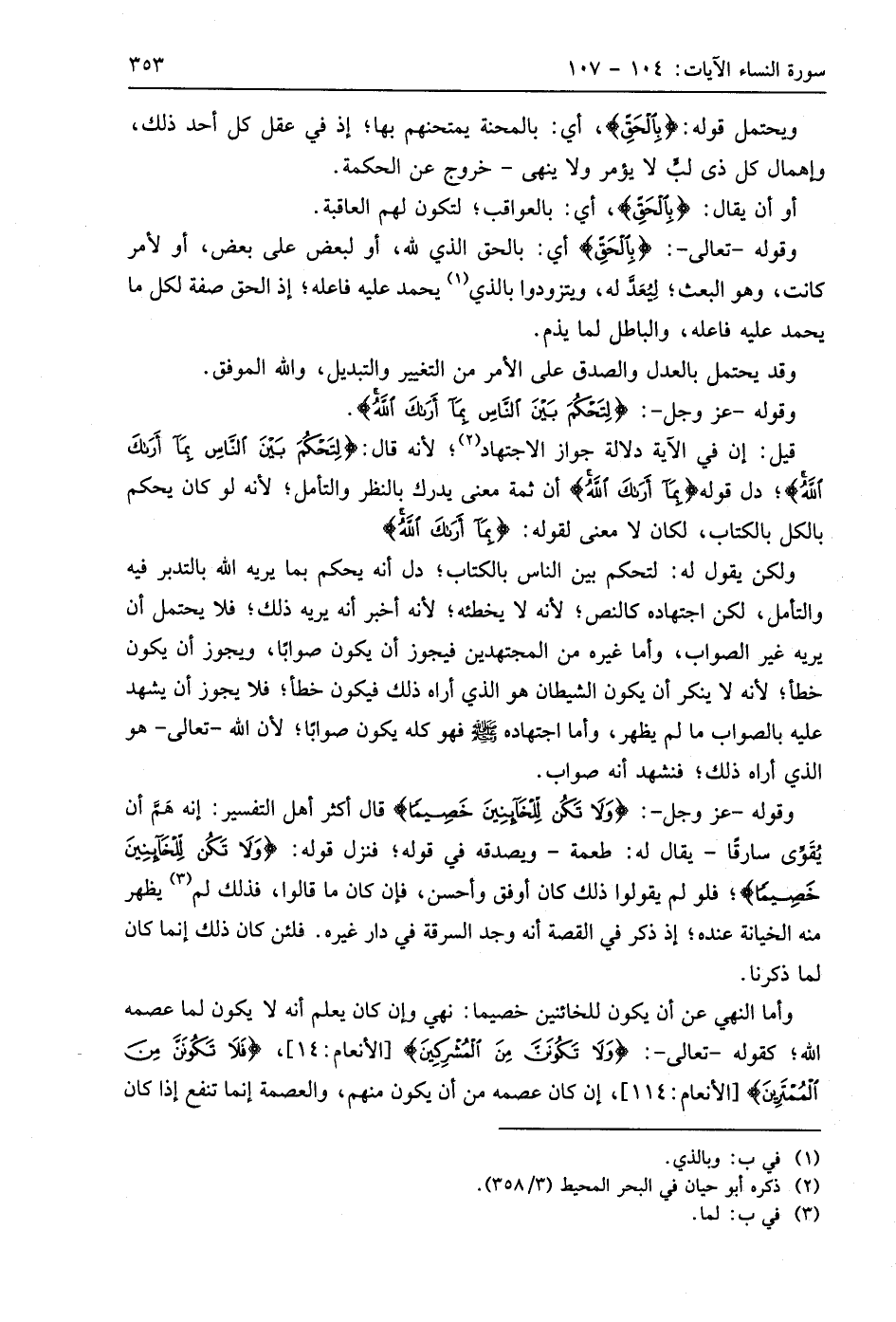ولكن يقول له: لتحكم بين الناس بالكتاب؛ دل أنه يحكم بما يريه اللَّه بالتدبر فيه والتأمل، لكن اجتهاده كالنص؛ لأنه لا يخطئه؛ لأنه أخبر أنه يريه ذلك؛ فلا يحتمل أن يريه غير الصواب، وأما غيره من المجتهدين فيجوز أن يكون صوابًا، ويجوز أن يكون خطأ؛ لأنه لا ينكر أن يكون الشيطان هو الذي أراه ذلك فيكون خطأ؛ فلا يجوز أن يشهد عليه بالصواب ما لم يظهر، وأما اجتهاده - صَلَّى اللَّهُ عَلَيهِ وَسَلَّمَ - فهو كله يكون صوابًا؛ لأن اللَّه - تعالى - هو الذي أراه ذلك؛ فنشهد أنه صواب.