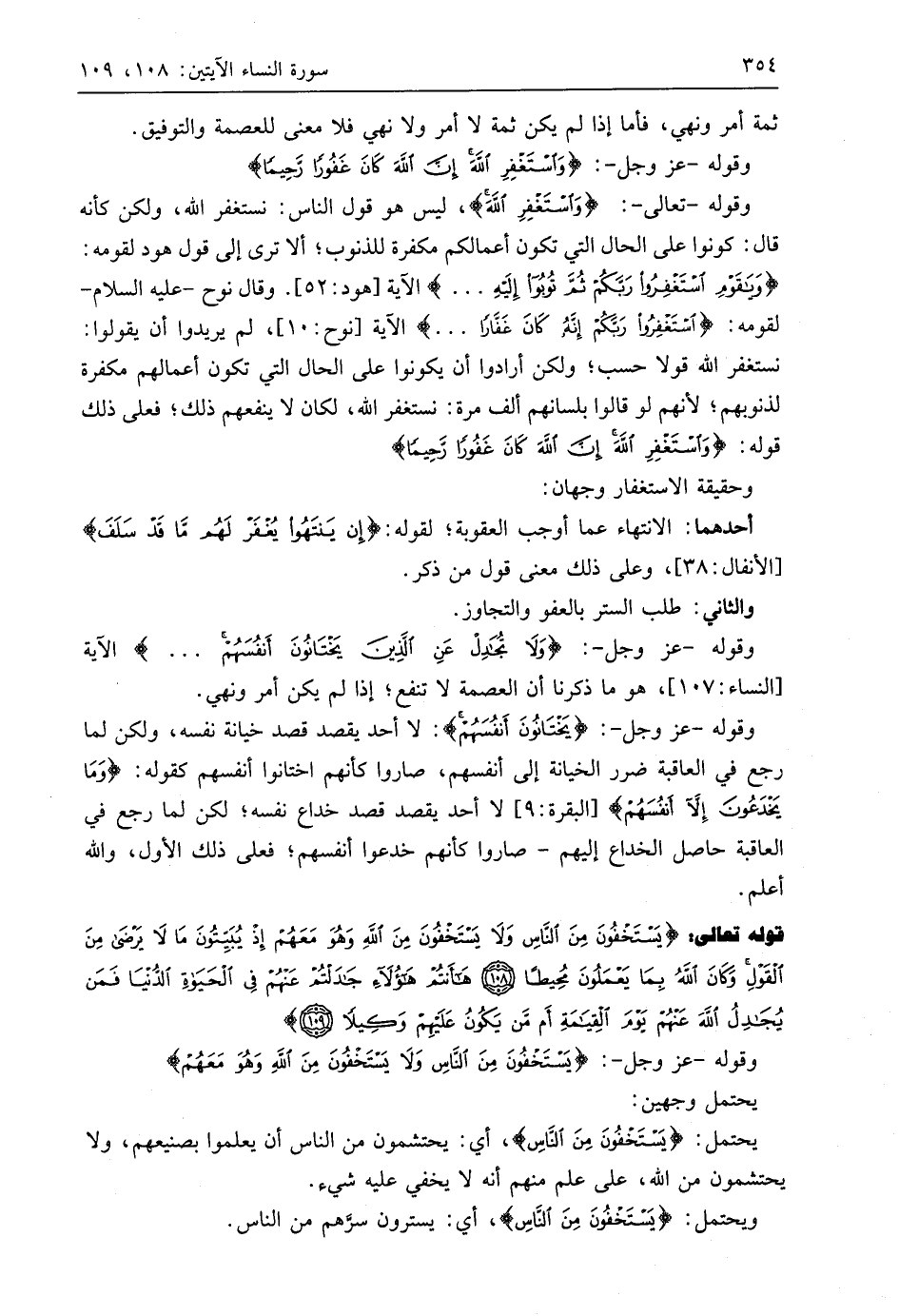 وقوله - عَزَّ وَجَلَّ -: (وَاسْتَغْفِرِ اللَّهَ إِنَّ اللَّهَ كَانَ غَفُورًا رَحِيمًا (106)