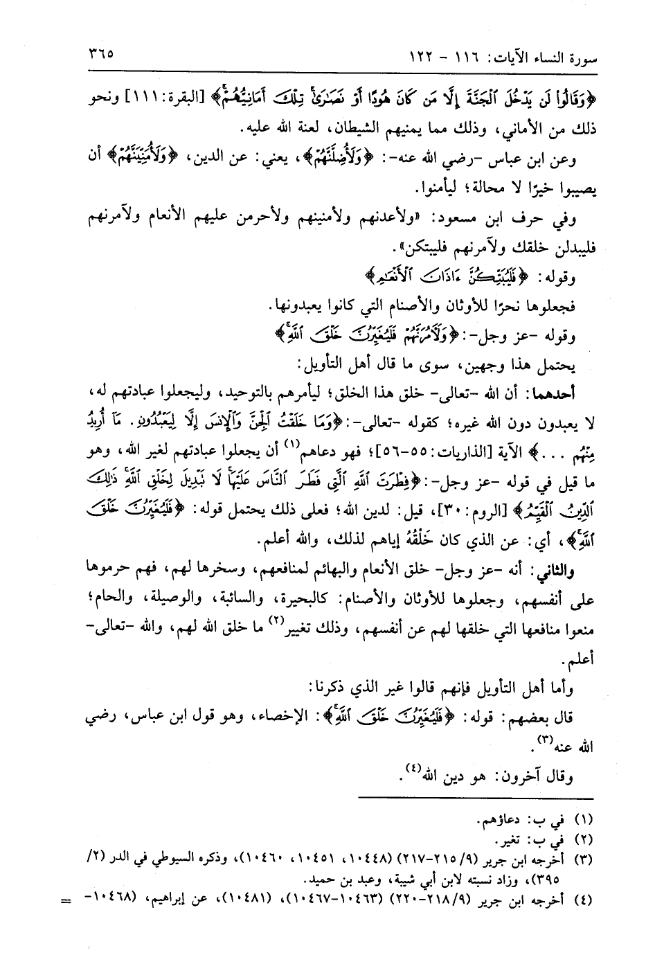 وفي حرف ابن مسعود: " ولأعدنهم ولأمنينهم ولأحرمنَّ عليهم الأنعام ولآمرنهم فليبدلن خلقك ولآمرنهم فليبتكن ".