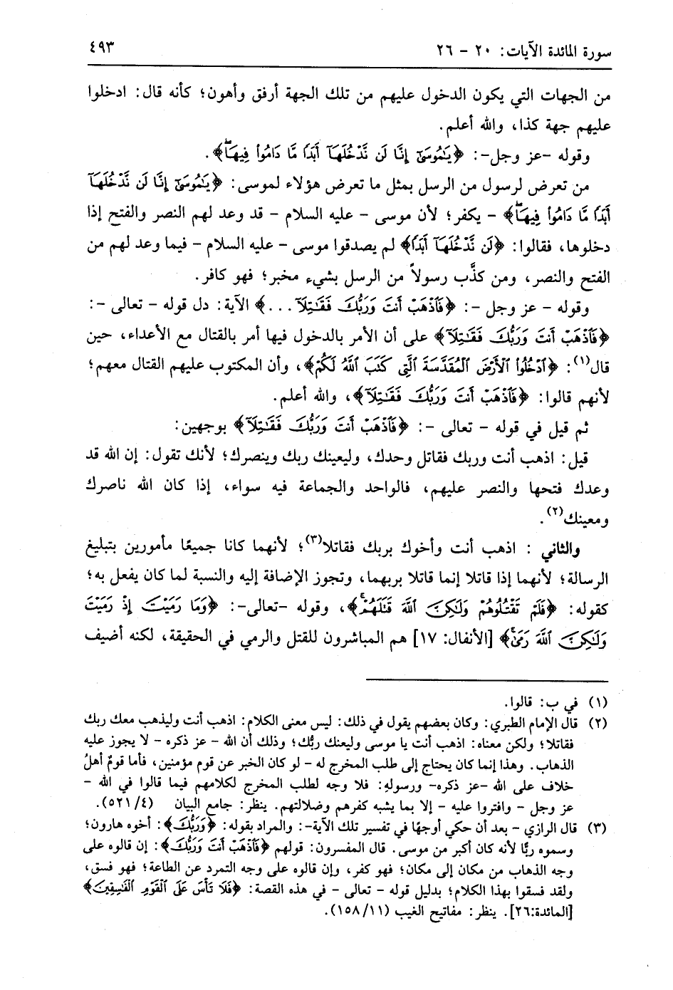 من تعرض لرسول من الرسل بمثل ما تعرض هَؤُلَاءِ لموسى: (يَا مُوسَى إِنَّا لَنْ نَدْخُلَهَا أَبَدًا مَا دَامُوا فِيهَا) - يكفر؛ لأن موسى - عليه السلام - قد وعد لهم النصر والفتح إذا دخلوها، فقالوا: (لَنْ نَدْخُلَهَا أَبَدًا) لم يصدقوا موسى - عليه السلام - فيما وعد لهم من الفتح والنصر، ومن كذب رسولا من الرسل بشيء مخبر؛ فهو كافر.