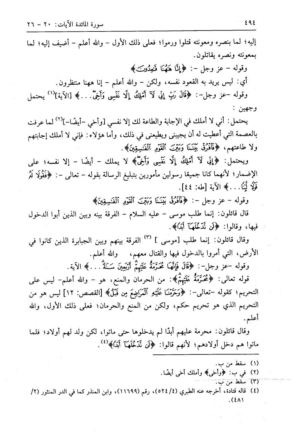 وقال قائلون: محرمة عليهم أبدًا لم يدخلوها حتى ماتوا، لكن ولد لهم أولاد؛ فلما ماتوا هم دخل أولادهم؛ لأنهم قالوا: (لَنْ نَدْخُلَهَا أَبَدًا).