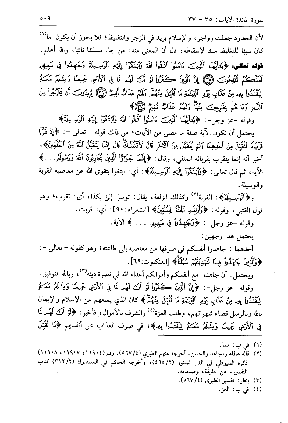 قوله تعالى: (يَا أَيُّهَا الَّذِينَ آمَنُوا اتَّقُوا اللَّهَ وَابْتَغُوا إِلَيْهِ الْوَسِيلَةَ وَجَاهِدُوا فِي سَبِيلِهِ لَعَلَّكُمْ تُفْلِحُونَ (35) إِنَّ الَّذِينَ كَفَرُوا لَوْ أَنَّ لَهُمْ مَا فِي الْأَرْضِ جَمِيعًا وَمِثْلَهُ مَعَهُ لِيَفْتَدُوا بِهِ مِنْ عَذَابِ يَوْمِ الْقِيَامَةِ مَا تُقُبِّلَ مِنْهُمْ وَلَهُمْ عَذَابٌ أَلِيمٌ (36) يُرِيدُونَ أَنْ يَخْرُجُوا مِنَ النَّارِ وَمَا هُمْ بِخَارِجِينَ مِنْهَا وَلَهُمْ عَذَابٌ مُقِيمٌ (37)