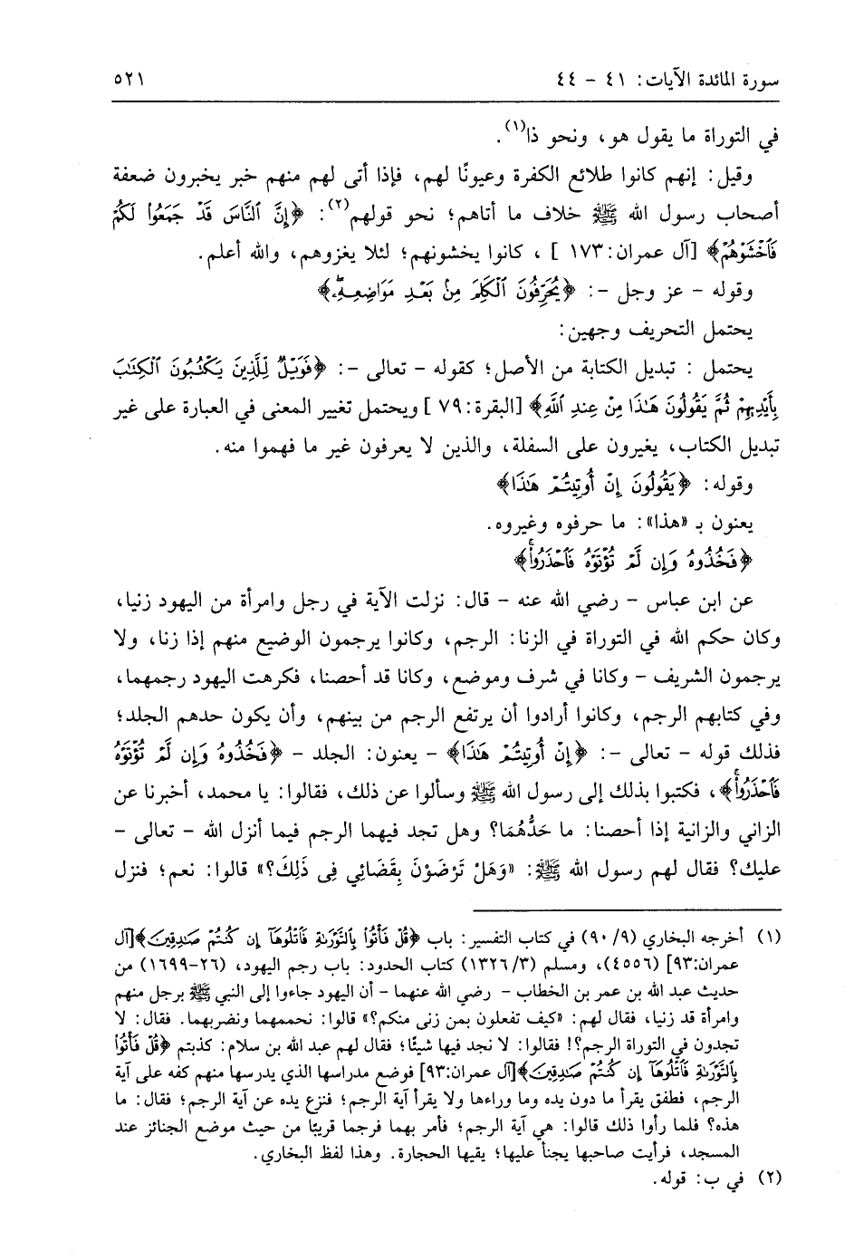 عن ابن عَبَّاسٍ - رضي اللَّه عنه - قال: نزلت الآية في رجل وامرأة من اليهود زنيا، وكان حكم اللَّه في التوراة في الزنا: الرجم، وكانوا يرجمون الوضيع منهم إذا زنا، ولا يرجمون الشريف - وكانا في شرف وموضع، وكانا قد أحصنا، فكرهت اليهود رجمهما، وفي كتابهم الرجم، وكانوا أرادوا أن يرتفع الرجم من بينهم، وأن يكون حدهم الجلد؛ فذلك قوله - تعالى -: (إِنْ أُوتِيتُمْ هَذَا) - يعنون: الجلد - (فَخُذُوهُ وَإِنْ لَمْ تُؤْتَوْهُ فَاحْذَرُوا)، فكتبوا بذلك إلى رسول اللَّه - صَلَّى اللَّهُ عَلَيهِ وَسَلَّمَ - وسألوا عن ذلك، فقالوا: يا مُحَمَّد، أخبرنا عن الزاني والزانية إذا أحصنا: ما حَدُّهُمَا؟ وهل تجد فيهما الرجم فيما أنزل اللَّه - تعالى - عليك؛ فقال لهم رسول اللَّه - صَلَّى اللَّهُ عَلَيهِ وَسَلَّمَ -: " وَهَلْ تَرضَونَ بِقَضَائِي فِي ذَلِكَ؟ " قالوا: نعم؛ فنزل