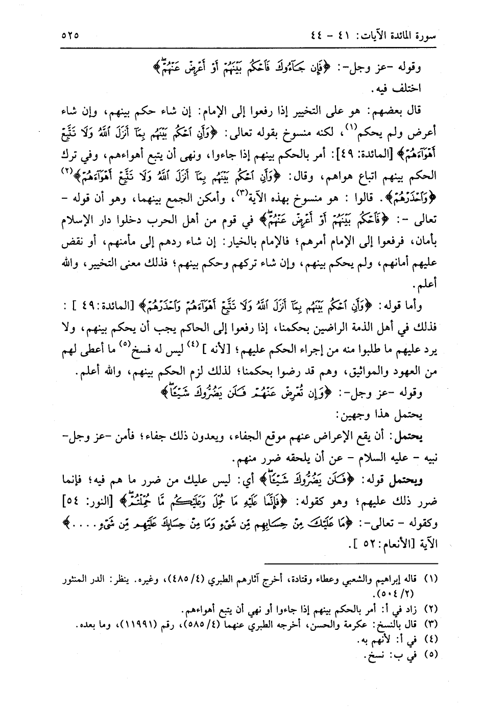 وقوله - عَزَّ وَجَلَّ -: (فَإِنْ جَاءُوكَ فَاحْكُمْ بَيْنَهُمْ أَوْ أَعْرِضْ عَنْهُمْ)