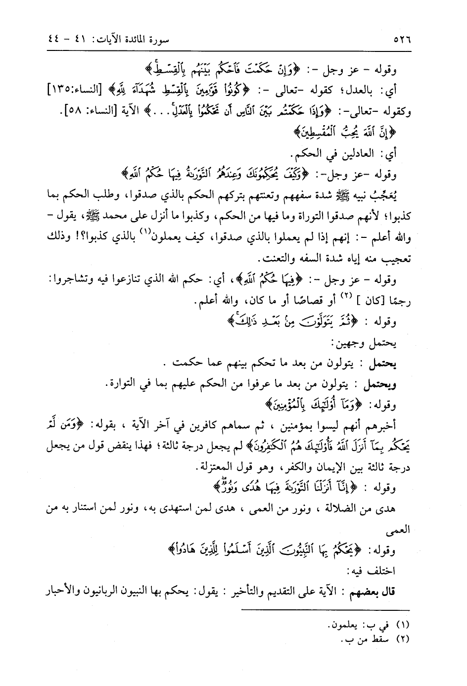 وقوله: (إِنَّا أَنْزَلْنَا التَّوْرَاةَ فِيهَا هُدًى وَنُورٌ ... (44)