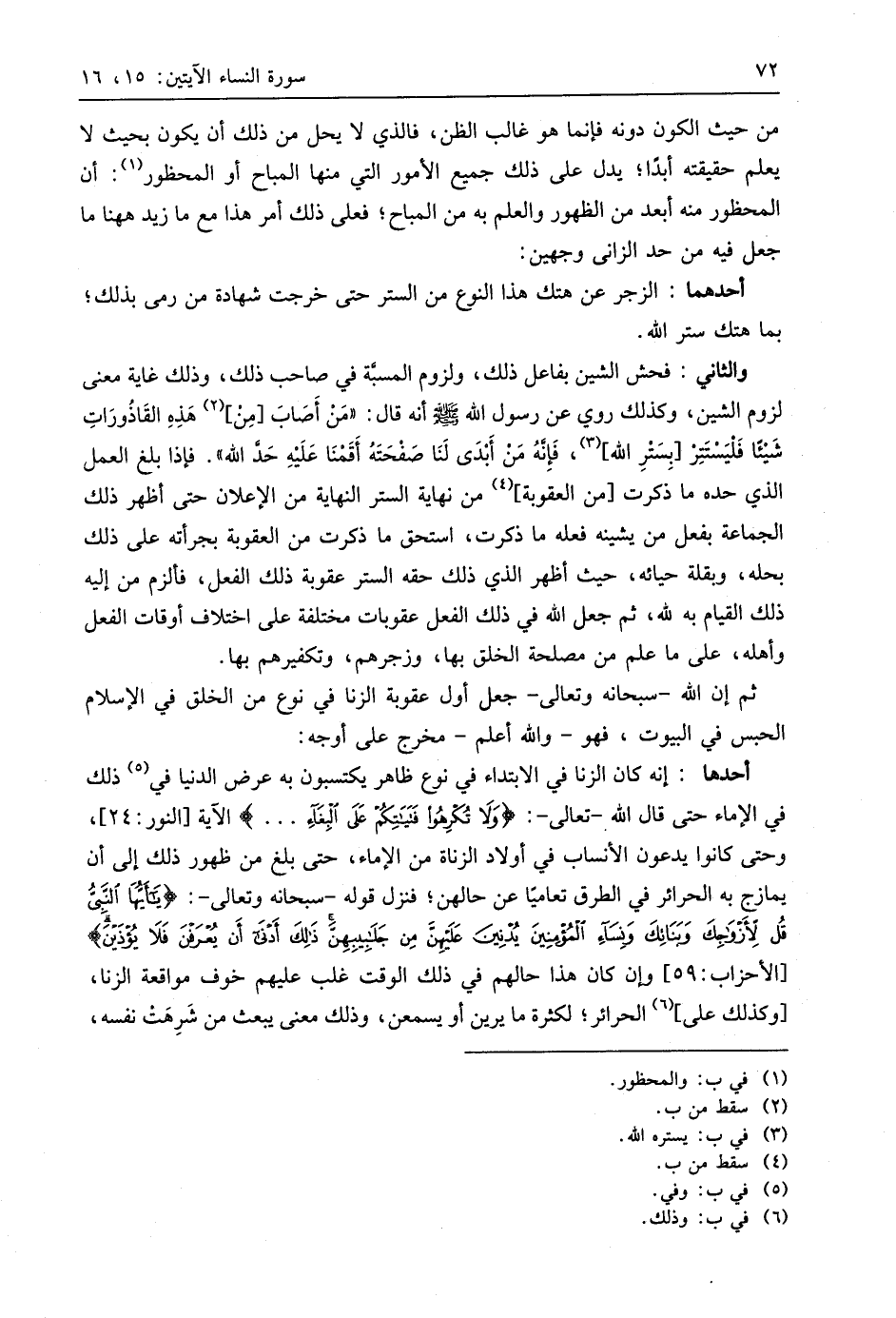 ثم إن اللَّه - سبحانه وتعالى - جعل أول عقوبة الزنا في نوع من الخلق في الإسلام الحبس في البيوت، فهو - واللَّه أعلم - مخرج على أوجه: