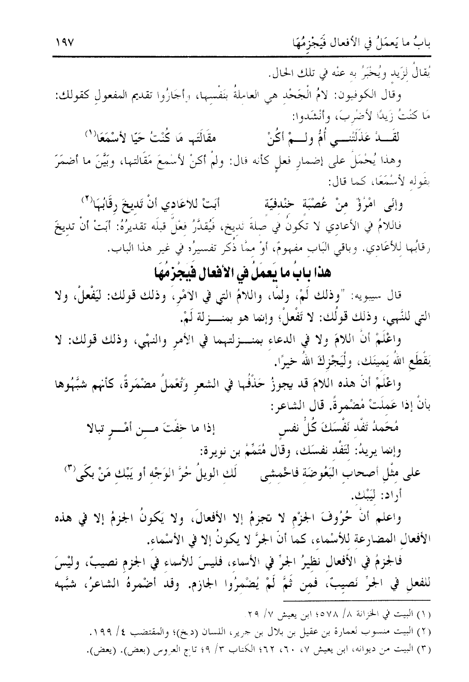 هذا باب ما يعمل في الأفعال فيجزمها