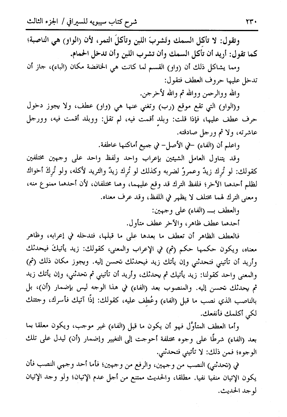 وتقول: لا تأكل السمك وتشرب اللبن وتأكل التمر، لأن (الواو) هي الناصبة؛ كما تقول: أريد أن تأكل السمك وأن تشرب اللبن وأن تدخل الحمام.