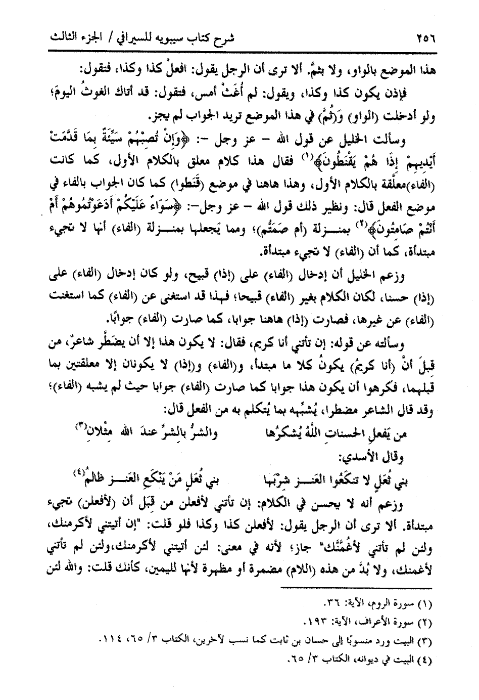 (¬3) البيت ورد منسوبا إلى حسان بن ثابت كما نسب لآخرين، الكتاب 3/ 65، 114.
