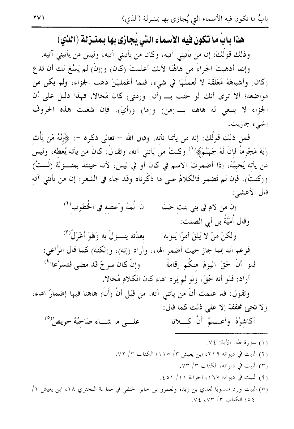 (¬5) البيت ورد منسوبا لعدي بن زيد؛ ولعمرو بن جابر الحنفي في حماسة البحتري 18، ابن يعيش 1/ 54؛ الكتاب 3/ 73، 74.