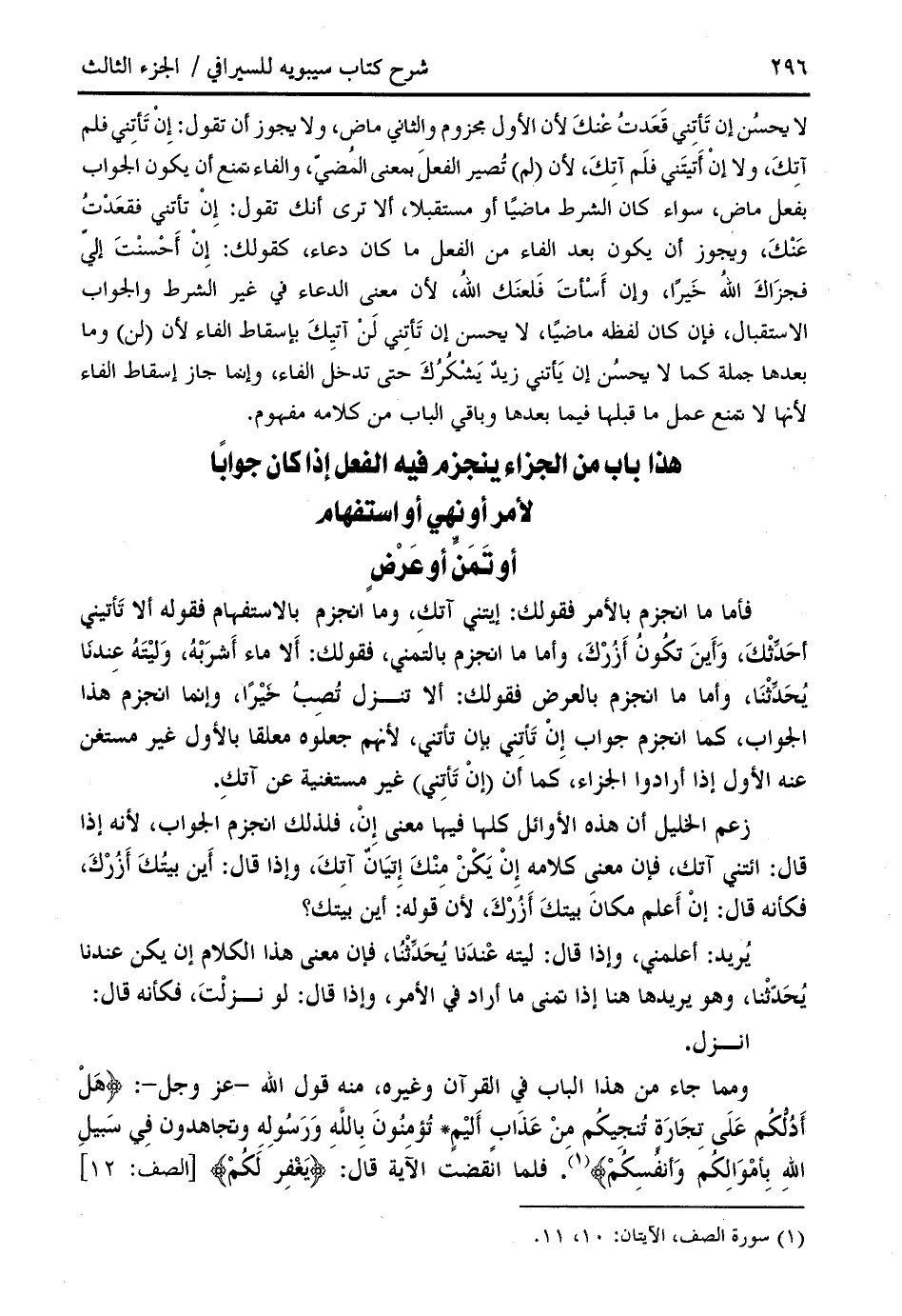 هذا باب من الجزاء ينجزم فيه الفعل إذا كان جوابا لأمر أو نهي أو استفهام أو تمنّ أو عرض