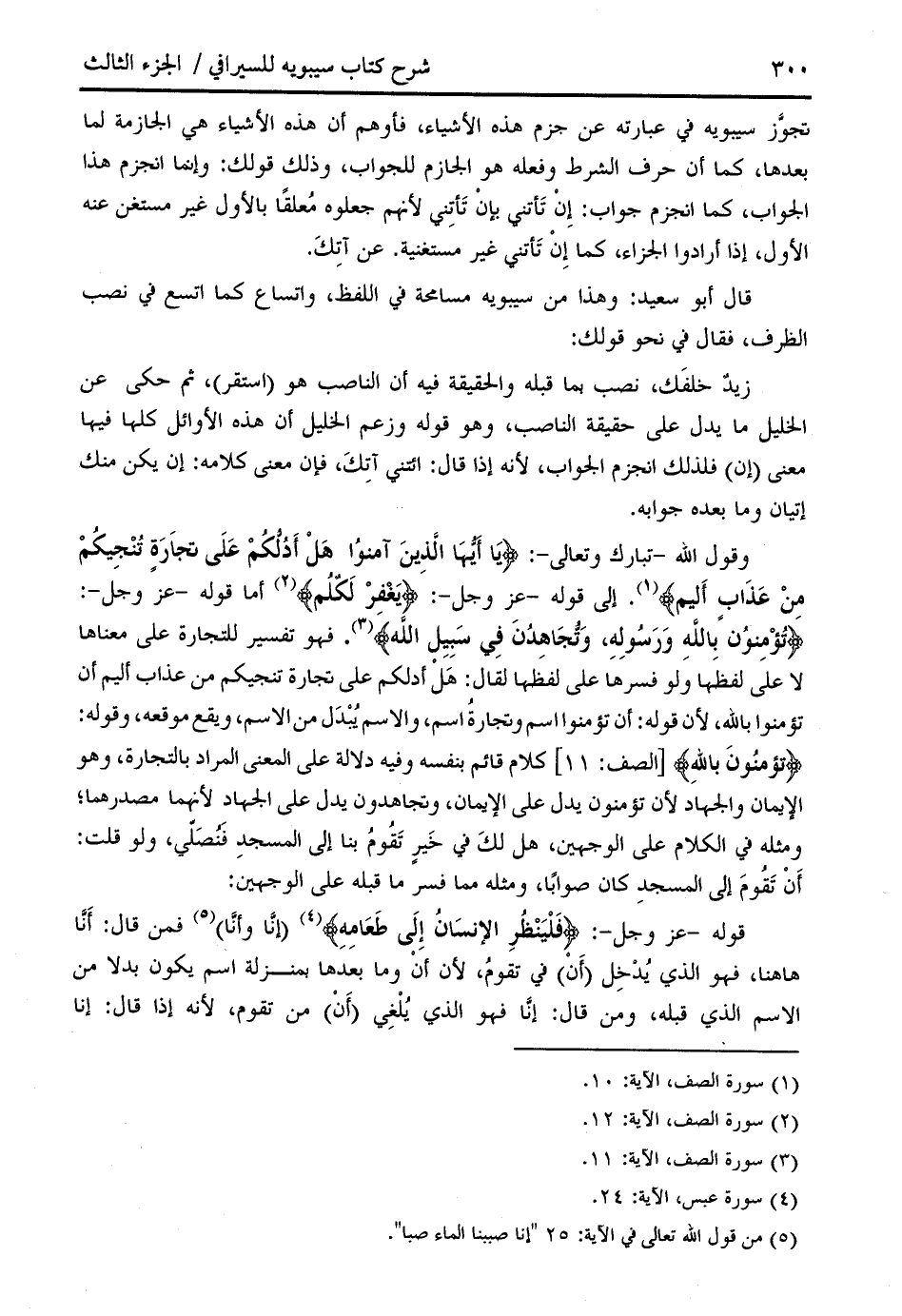 تُؤْمِنُونَ بِاللَّهِ وَرَسُولِهِ وَتُجاهِدُونَ فِي سَبِيلِ اللَّهِ (¬3). فهو تفسير للتجارة على معناها لا على لفظها ولو فسرها على لفظها لقال: هل أدلكم على تجارة تنجيكم من عذاب أليم أن تؤمنوا بالله، لأن قوله: أن تؤمنوا اسم وتجارة اسم، والاسم يبدل من الاسم، ويقع موقعه، وقوله: