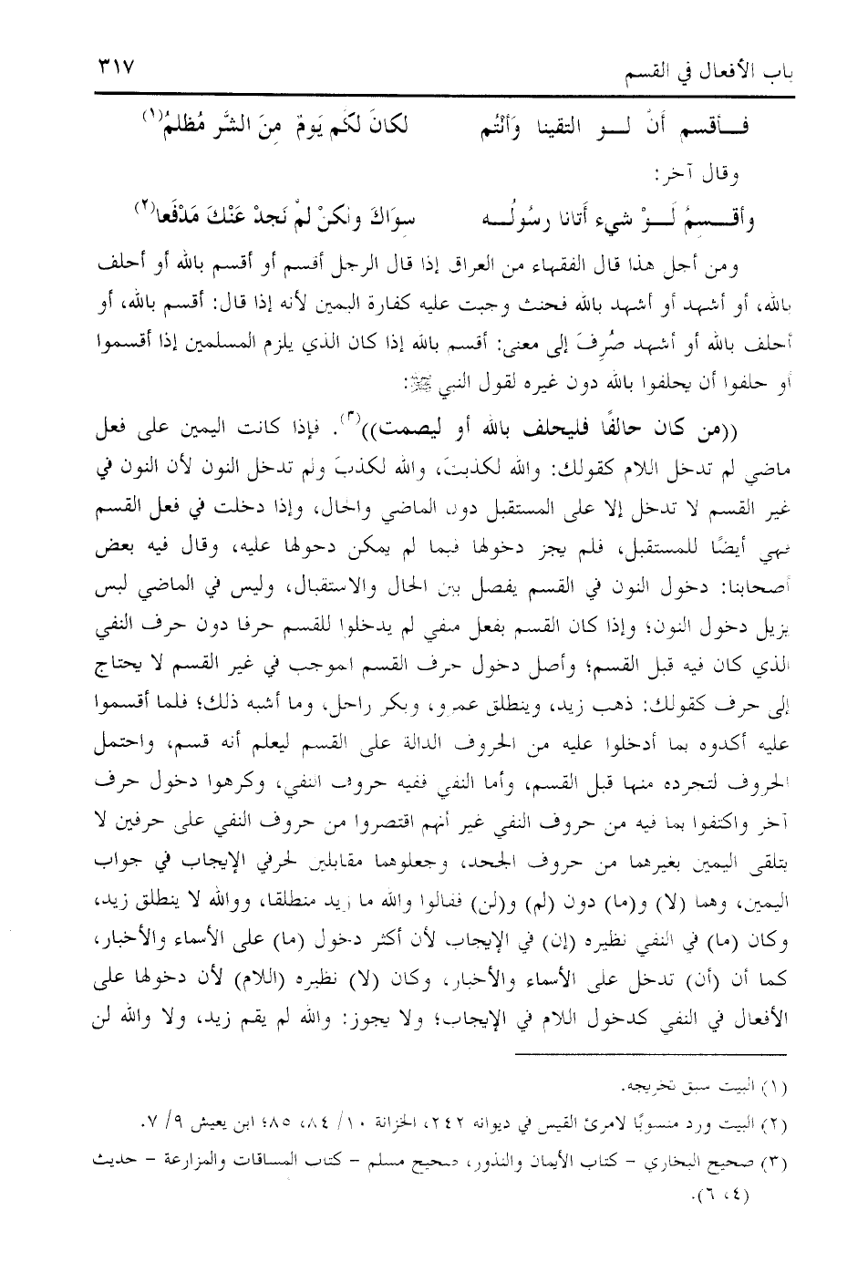 (¬2) البيت ورد منسوبا لامرئ القيس في ديوانه 242، الخزانة 10/ 84، 85؛ ابن يعيش 9/ 7.