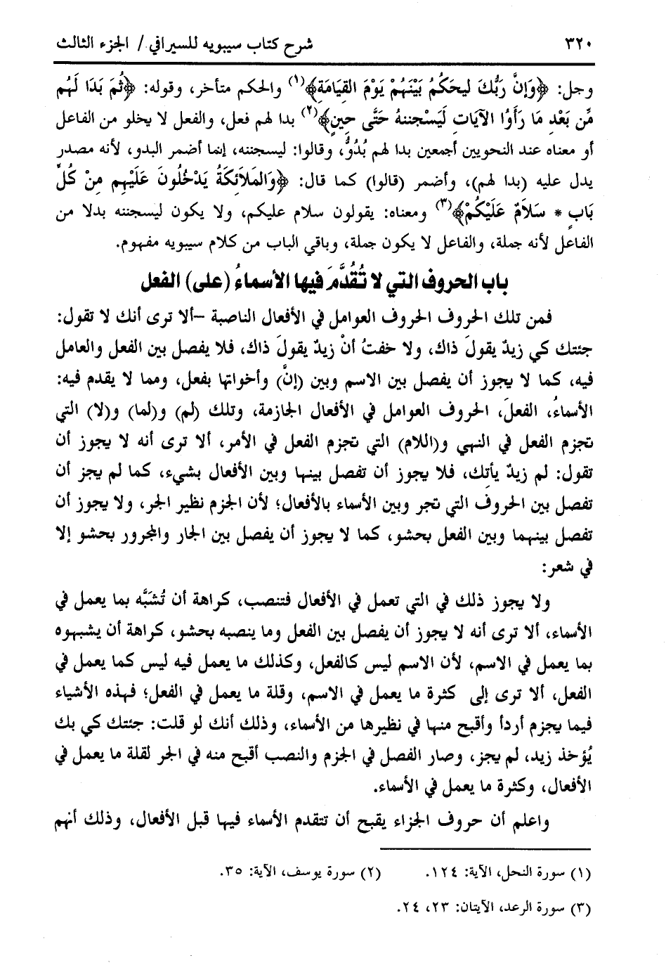 باب الحروف التي لا تقدّم فيها الأسماء (على) الفعل