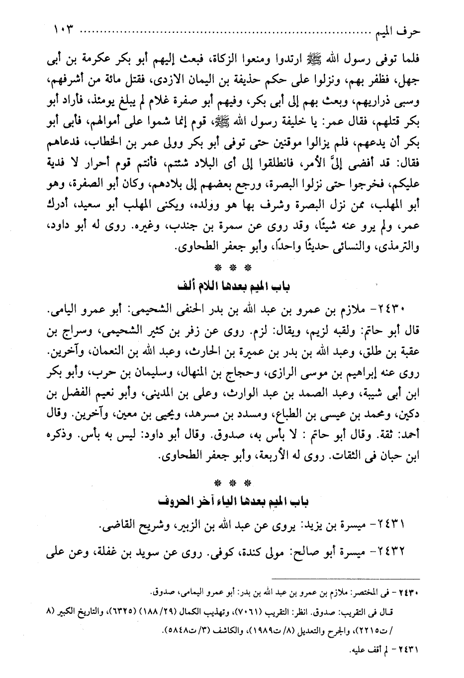 2430 - فى المختصر: ملازم بن عمرو بن عبد الله بن بدر: أبو عمرو اليمامى، صدوق.