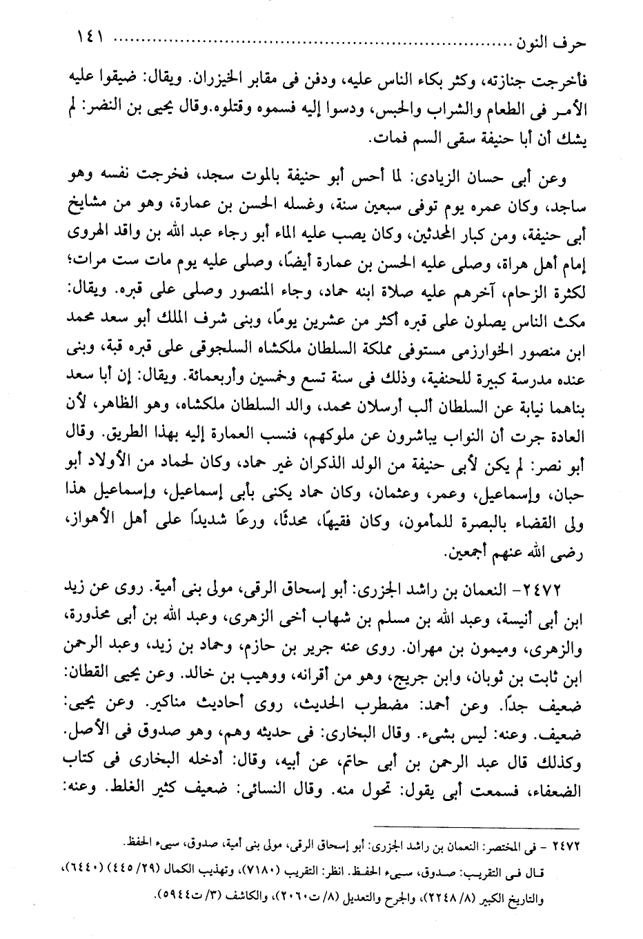 2472 - فى المختصر: النعمان بن راشد الجزرى: أبو إسحاق الرقى، مولى بنى أمية، صدوق، سيىء الحفظ.