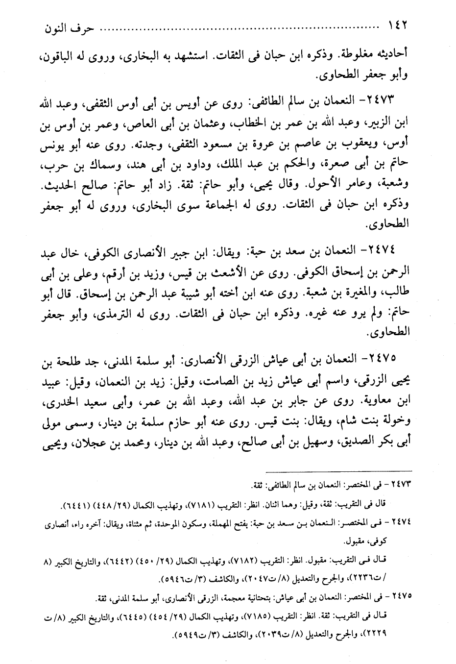 2473 - فى المختصر: النعمان بن سالم الطائفى: ثقة.