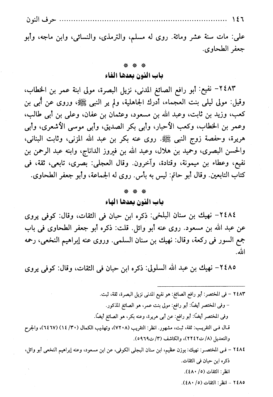 2485 - نهيك بن عبد الله السلولى: ذكره ابن حبان فى الثقات، وقال: كوفى يروى