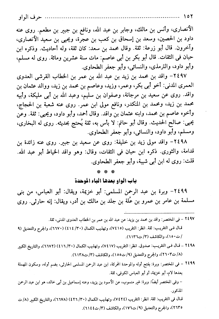 2497 - فى المختصر: واقد بن محمد بن يزيد: عن عبد الله بن عمر بن الخطاب العدوى المدنى، ثقة.