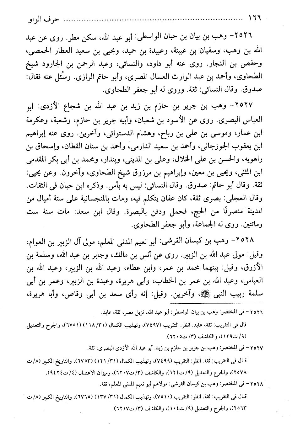2527 - فى المختصر: وهب بن جرير بن حازم بن زيد: أبو عبد الله الأزدى البصرى، ثقة.