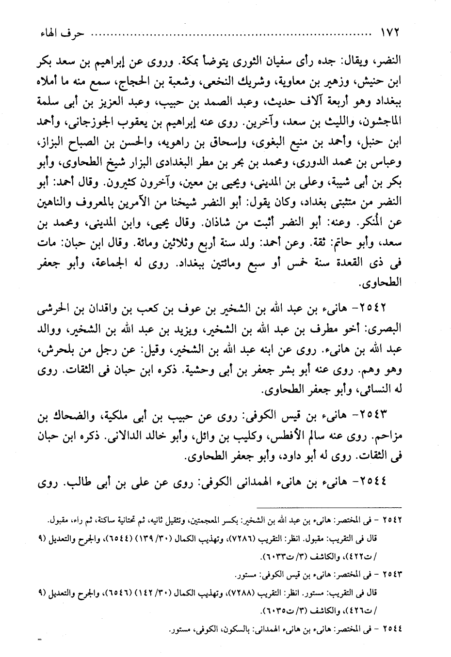 2542 - فى المختصر: هانىء بن عبد الله بن الشخير: بكسر المعجمتين، وتثقيل ثانيه، ثم تحتانية ساكنة، ثم راء، مقبول.