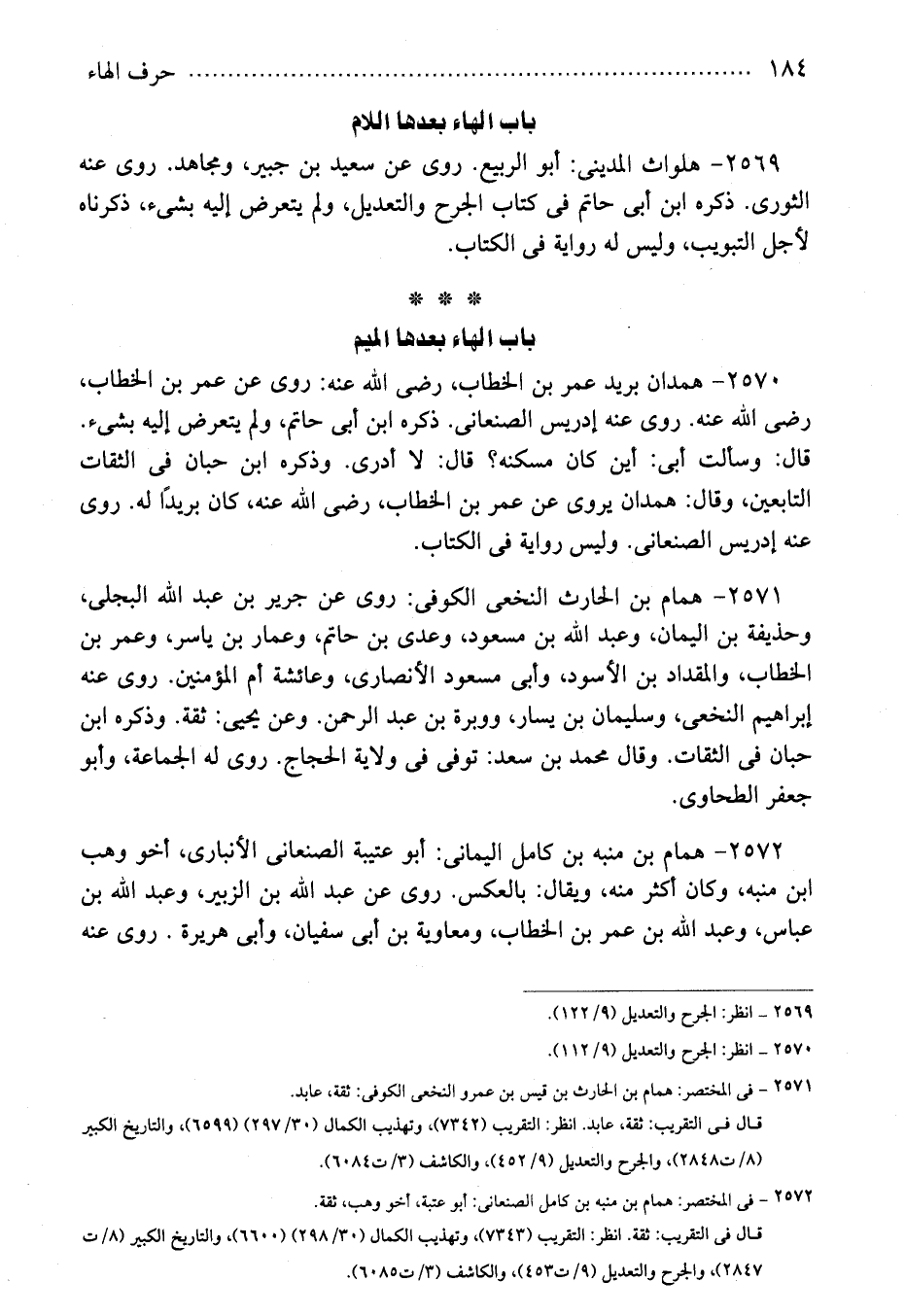 2572 - فى المختصر: همام بن منبه بن كامل الصنعانى: أبو عتبة، أخو وهب، ثقة.