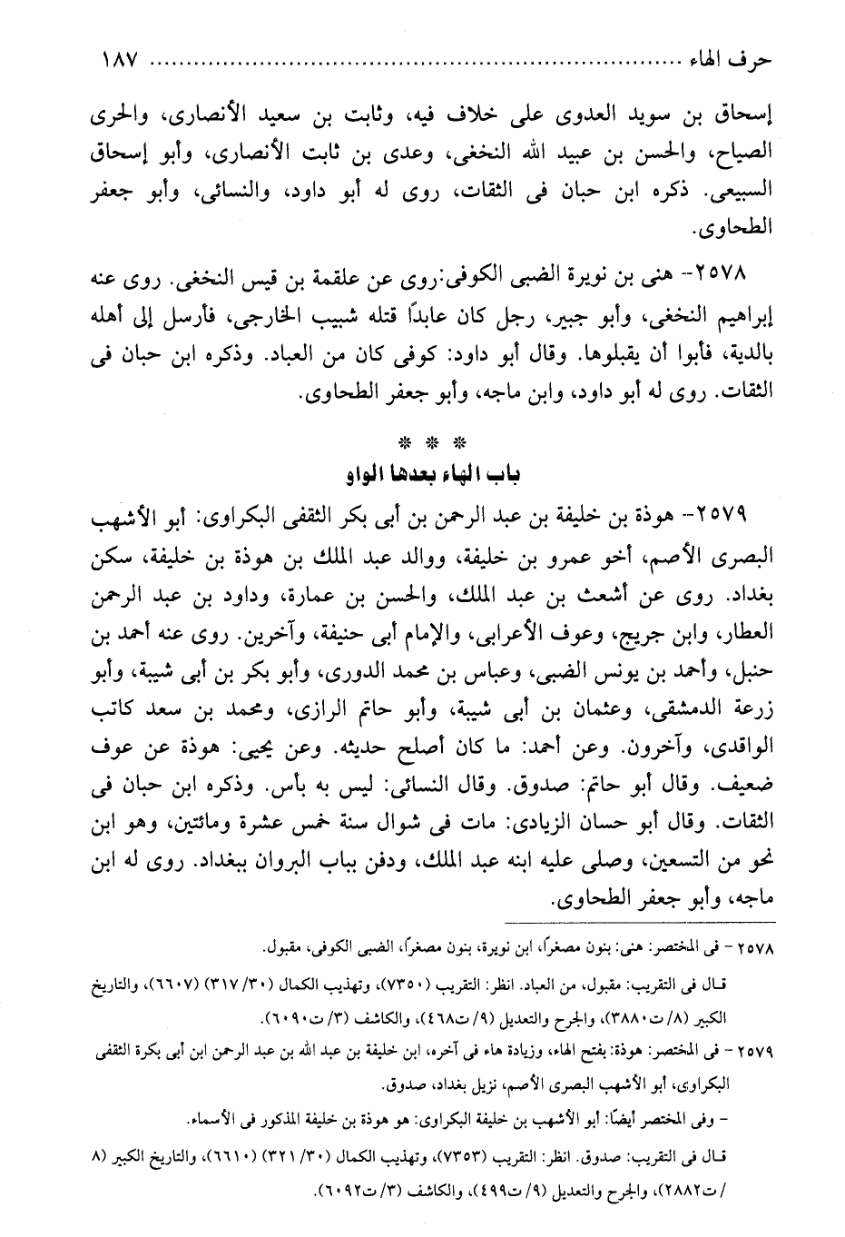 2578 - فى المختصر: هنى: بنون مصغرًا، ابن نويرة، بنون مصغرًا، الضبى الكوفى، مقبول.