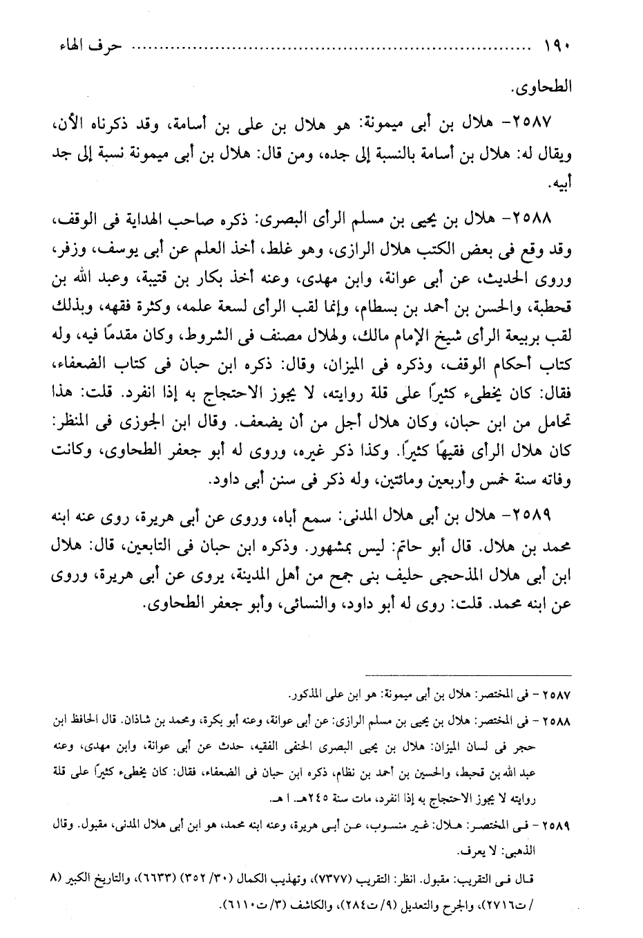 2587 - هلال بن أبى ميمونة: هو هلال بن على بن أسامة، وقد ذكرناه الأن، ويقال له: هلال بن أسامة بالنسبة إلى جده، ومن قال: هلال بن أبى ميمونة نسبة إلى جد أبيه.