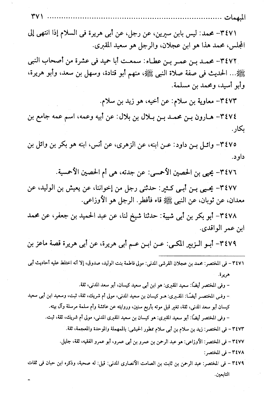3471 - محمد: ليس بابن سيرين، عن رجل، عن أبى هريرة فى السلام إذا انتهى إلى المجلس، محمد هذا هو ابن عجلان، والرجل هو سعيد المقبرى.