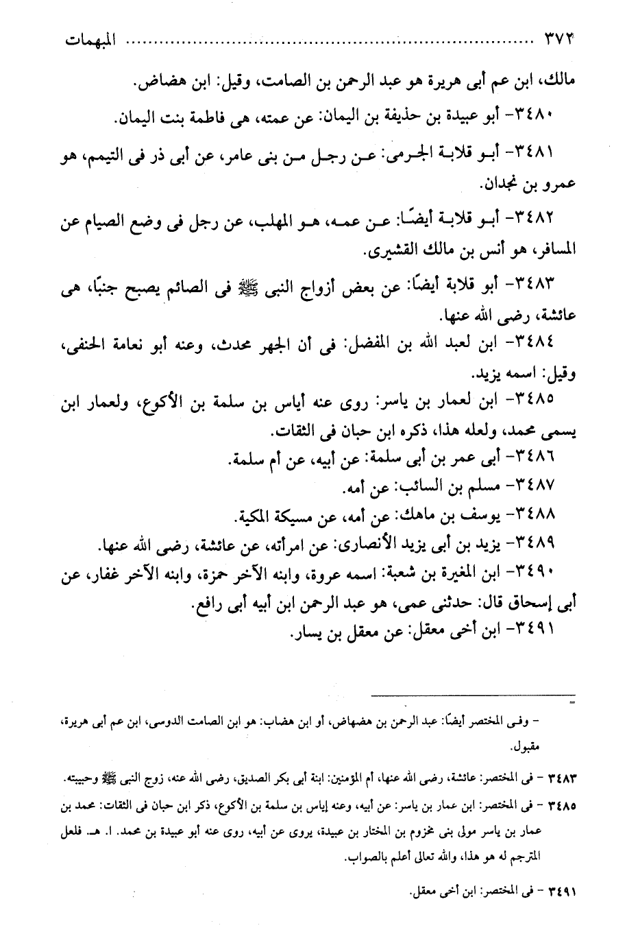 3480 - أبو عبيدة بن حذيفة بن اليمان: عن عمته، هى فاطمة بنت اليمان.
