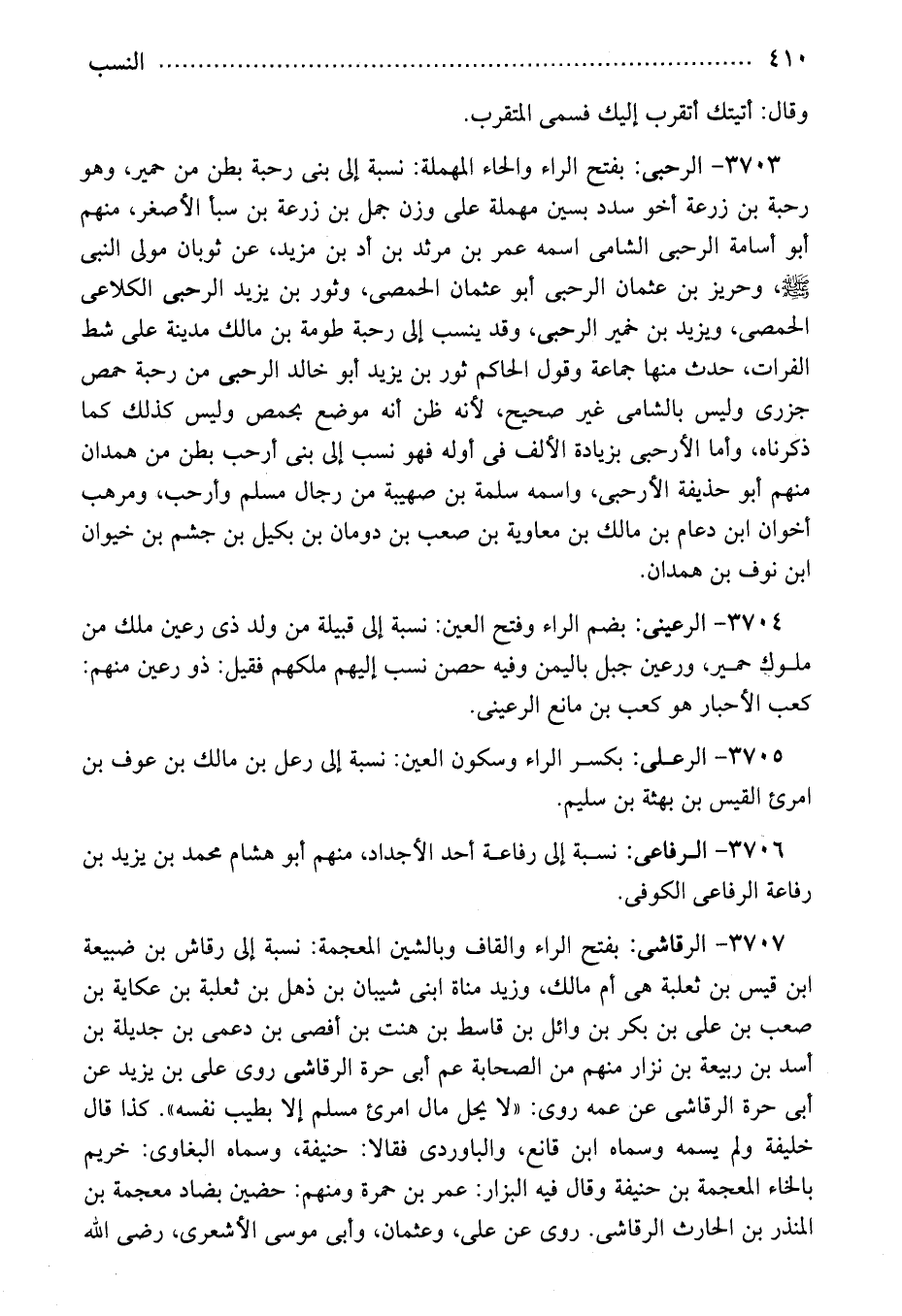3706 - الرفاعى: نسبة إلى رفاعة أحد الأجداد، منهم أبو هشام محمد بن يزيد بن رفاعة الرفاعى الكوفى.
