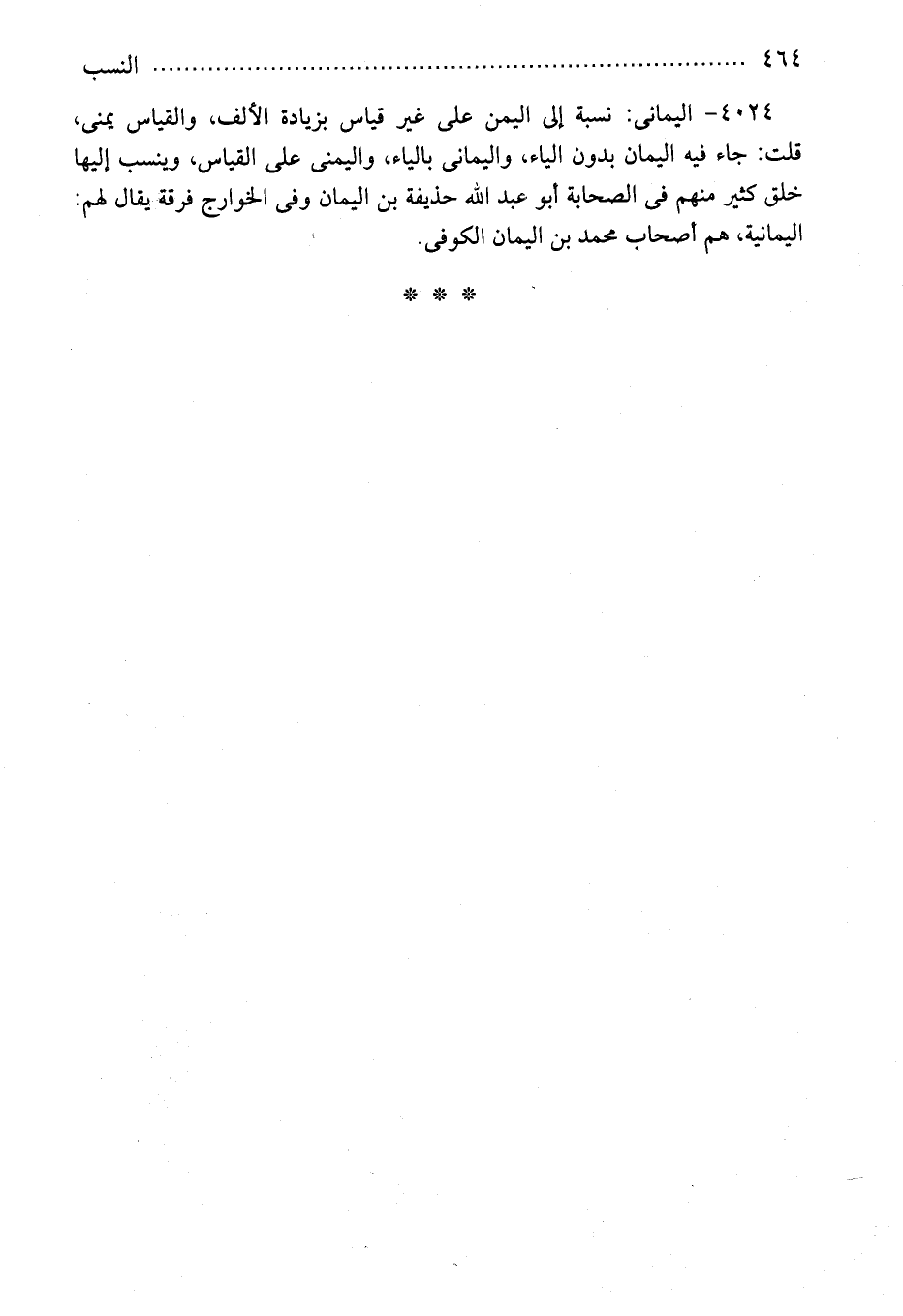 4024 - اليمانى: نسبة إلى اليمن على غير قياس بزيادة الألف، والقياس يمنى، قلت: جاء فيه اليمان بدون الياء، واليمانى بالياء، واليمنى على القياس، وينسب إليها خلق كثير منهم فى الصحابة أبو عبد الله حذيفة بن اليمان وفى الخوارج فرقة يقال لهم: اليمانية، هم أصحاب محمد بن اليمان الكوفى.