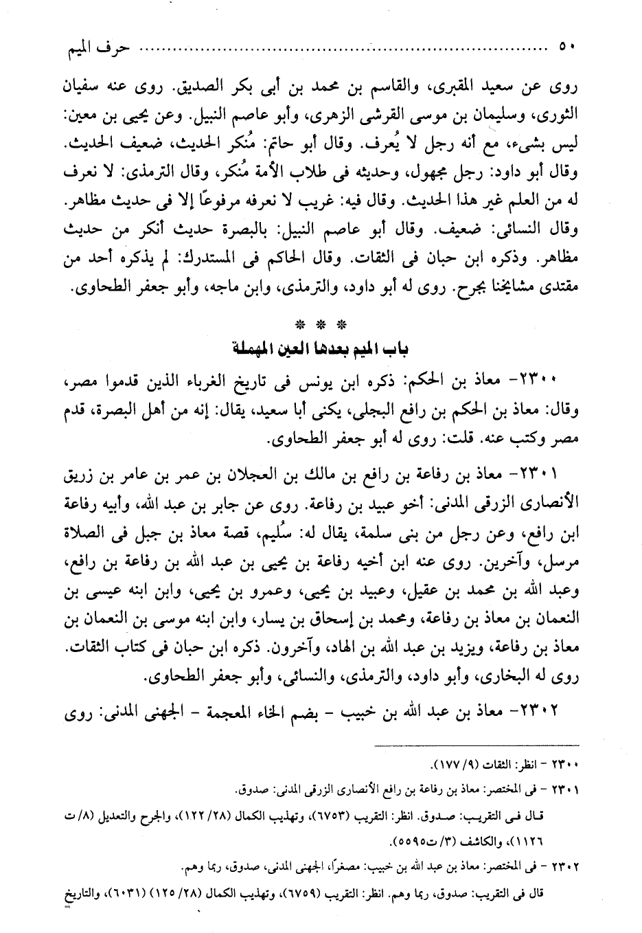 2301 - فى المختصر: معاذ بن رفاعة بن رافع الأنصارى الزرقى المدنى: صدوق.