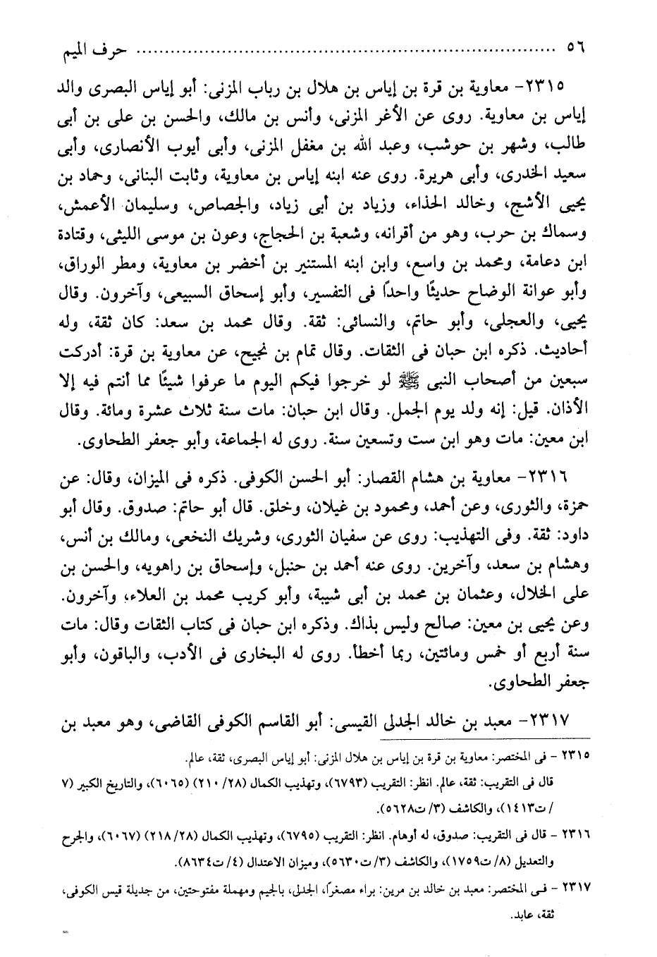 2315 - فى المختصر: معاوية بن قرة بن إياس بن هلال المزنى: أبو إياس البصرى، ثقة، عالم.