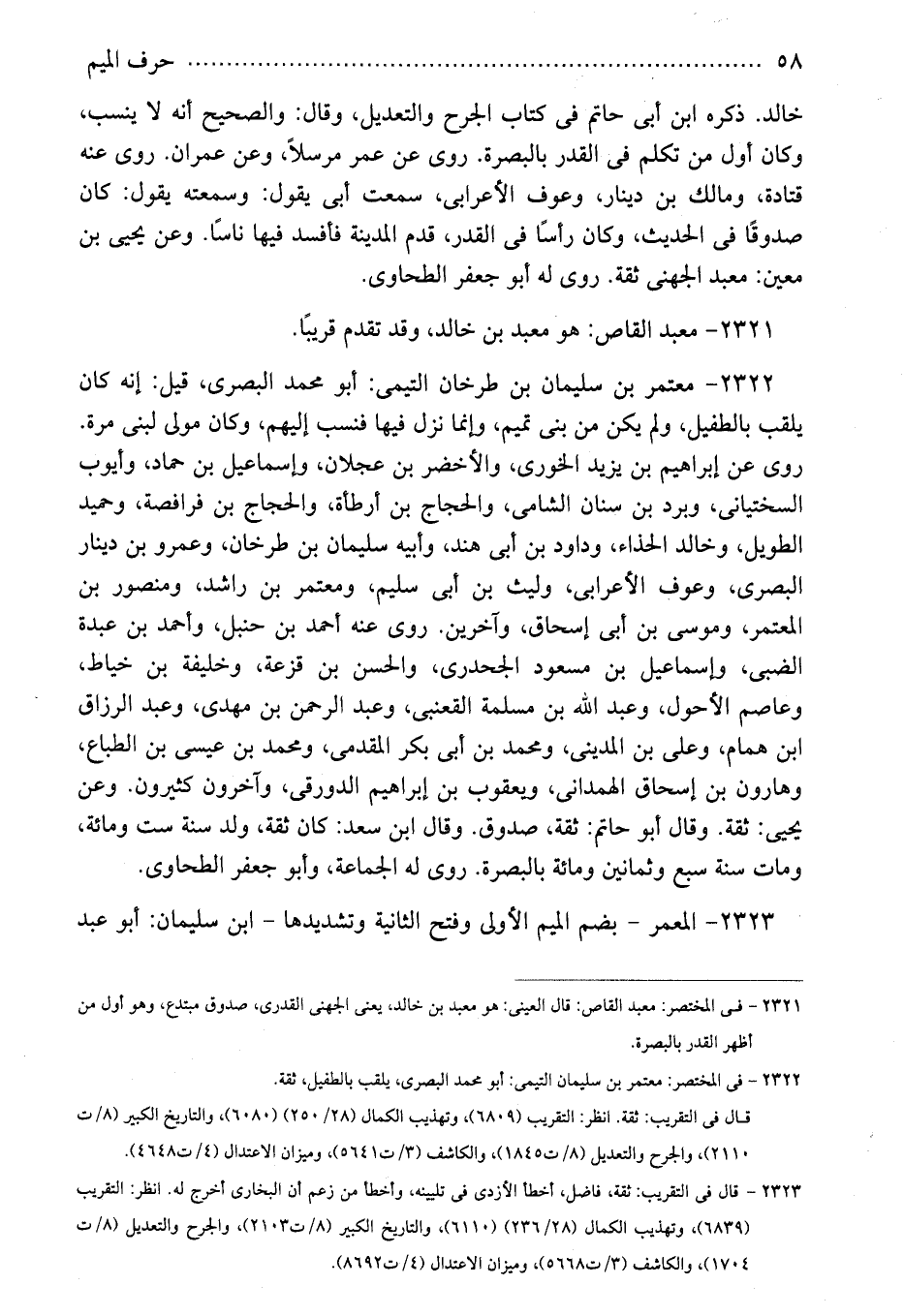 2321 - فى المختصر: معبد القاص: قال العينى: هو معبد بن خالد، يعنى الجهنى القدرى، صدوق مبتدع، وهو أول من أظهر القدر بالبصرة.