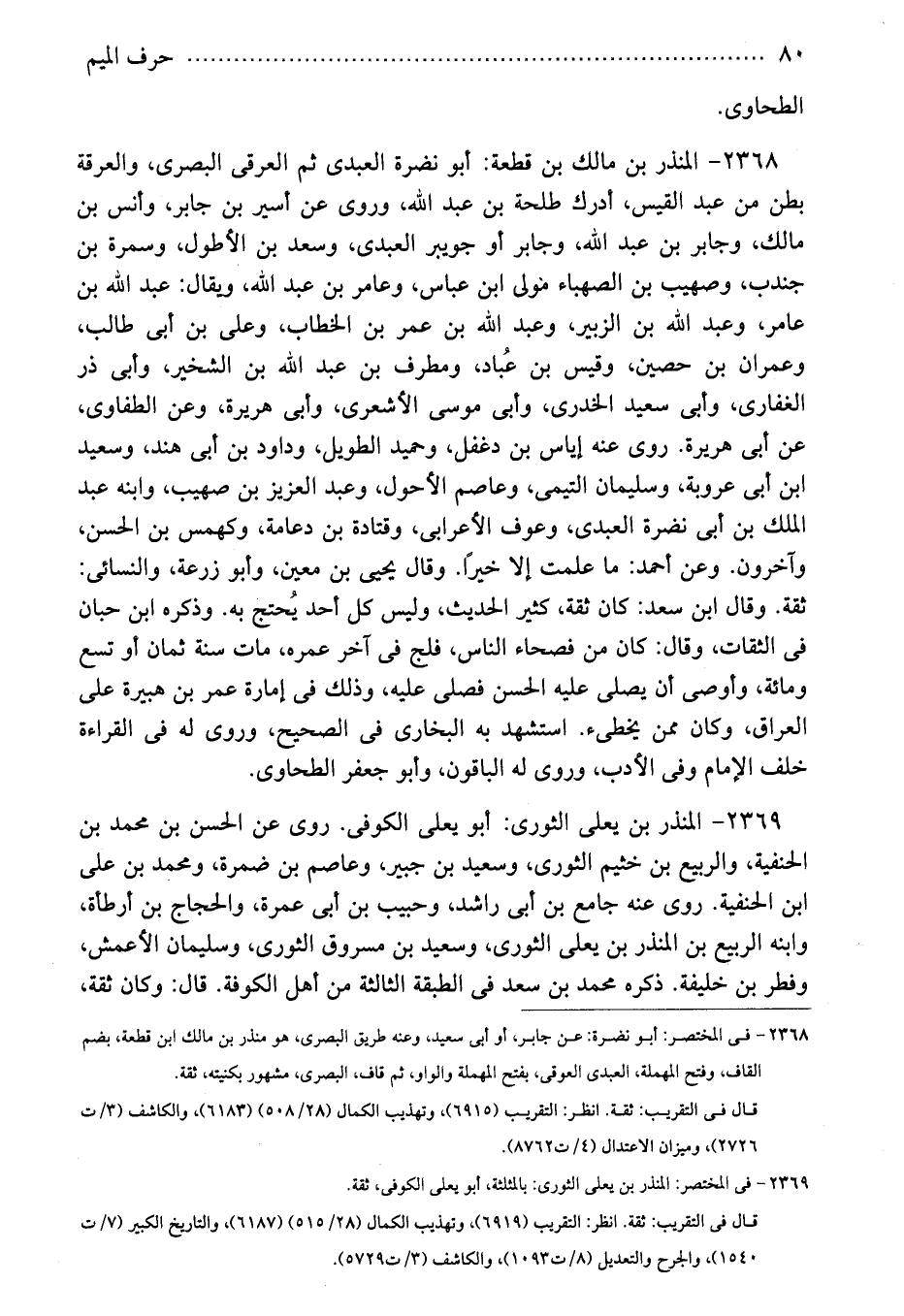 2369 - فى المختصر: المنذر بن يعلى الثورى: بالمثلثة، أبو يعلى الكوفى، ثقة.